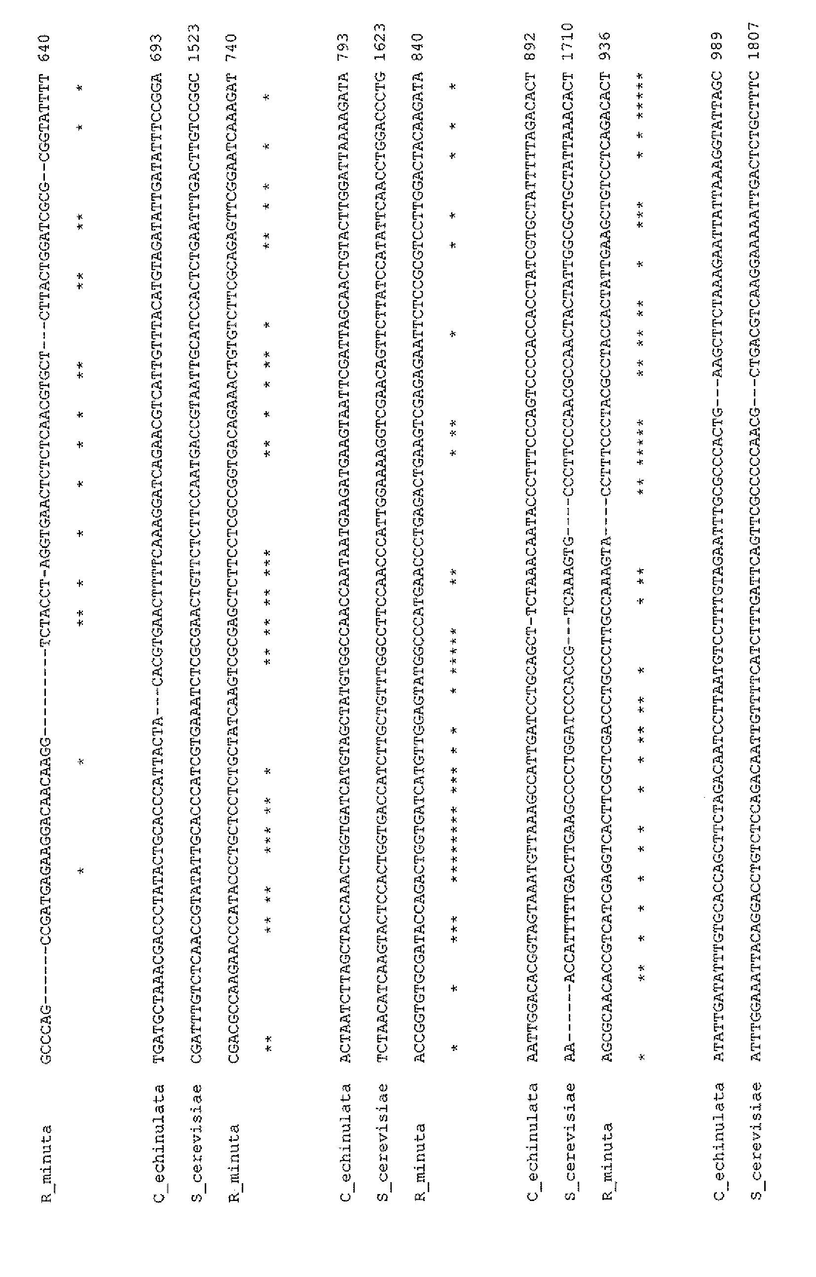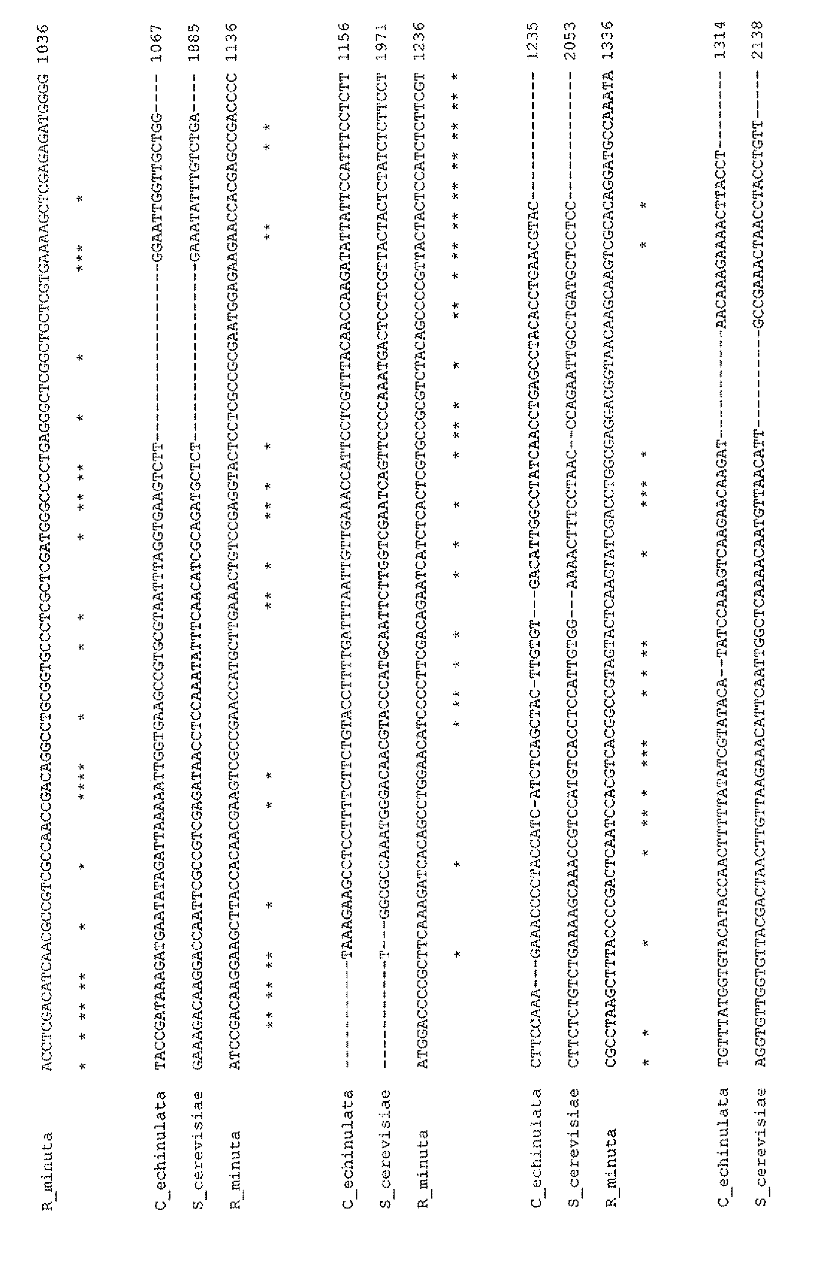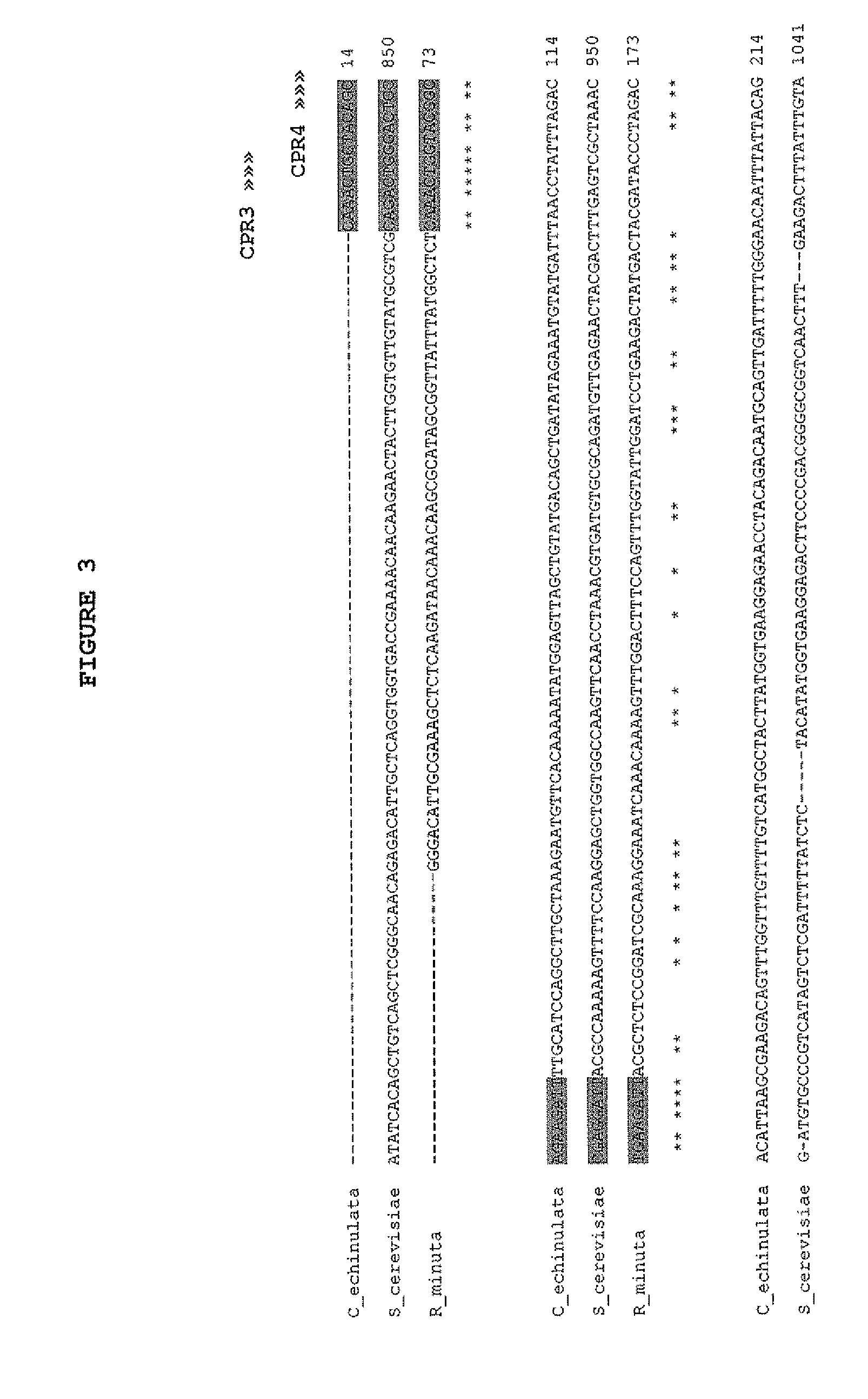 - Figure 3, Comparison of nucleotide sequences of genes for NADPH-cytochrome P450 reductase from different fungi C_echinulata: Cunninghamella echinulata (Zygomycetes) No access GenBank: AF195660. S-cerevisiae: Saccharomyces cerevisiae (Ascomycete) GenBank Access No.: D13788. R-minuta: Rhodotorula minuta (Basidiomycete) No access GenBank: AB055119. Gray line shows where some of the primers described in Table 1.