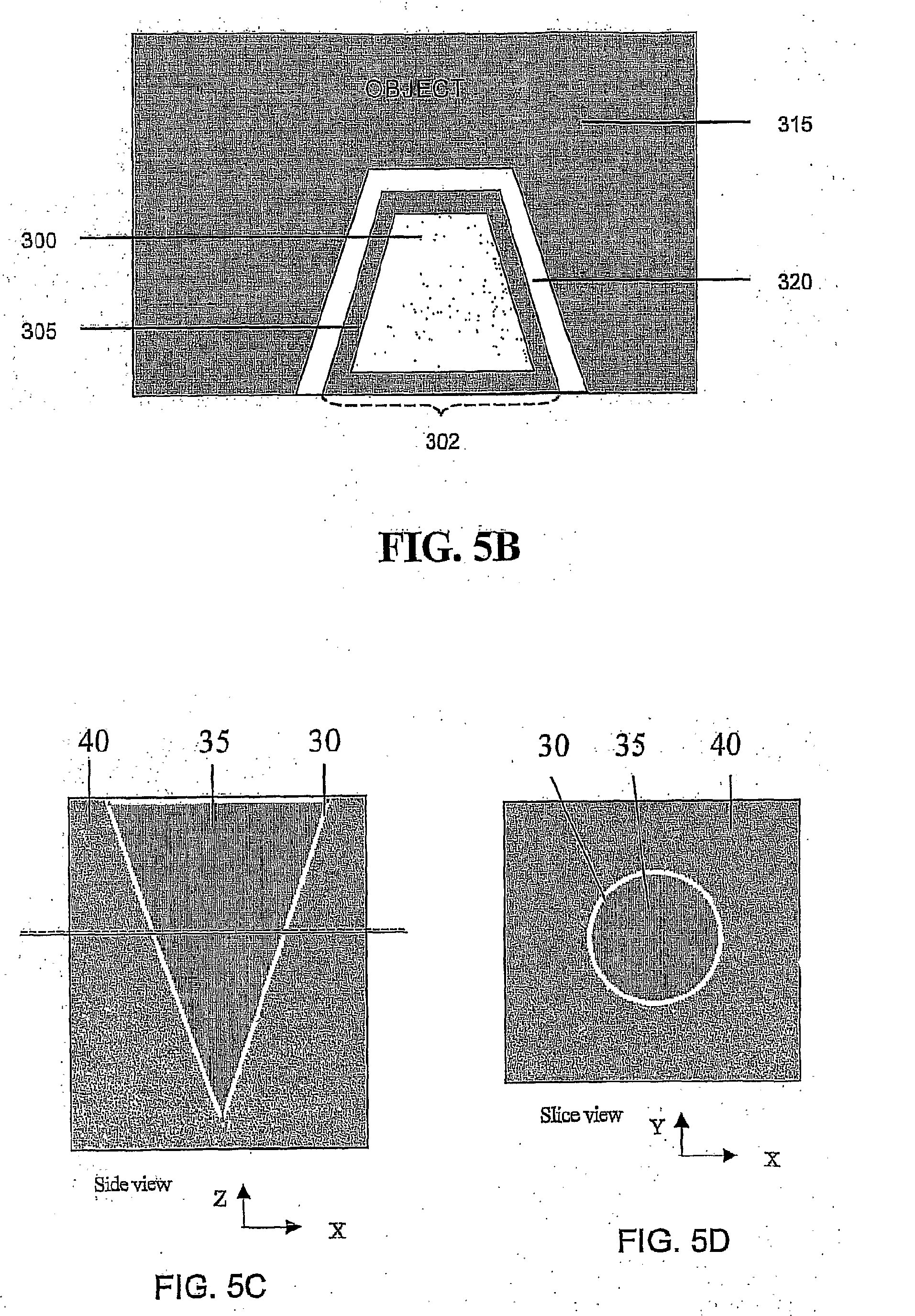 In another embodiment of the present invention, a non-limiting example of composition A is a photopolymer elastomer composition including SR 9036 (27%), Cl 1039 (28%), CN131 (15%), SR 506 (22%), Ph 3015 (7%) and 1-819 (1%).