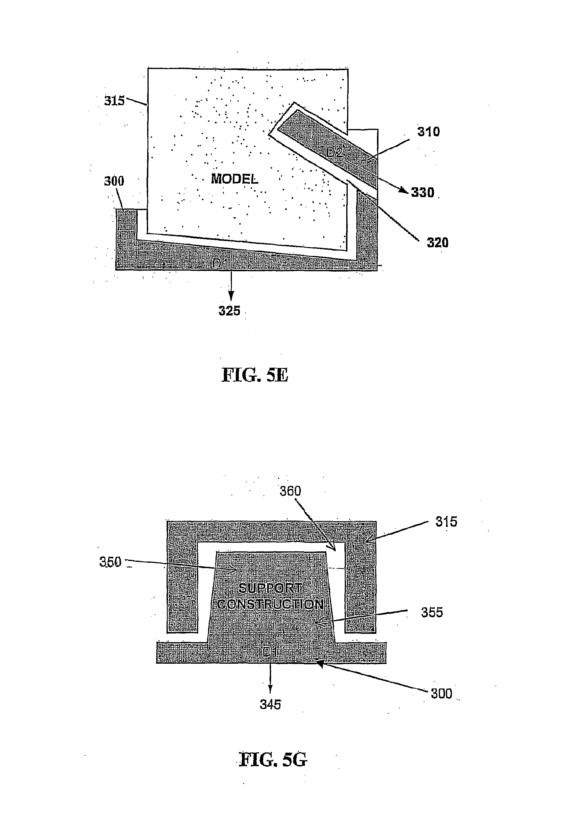 In another embodiment of the present invention, compositions A and B may be used to build model construction layers, compositions B and C may be used to build support construction layers and composition C may be used to build release construction layers.