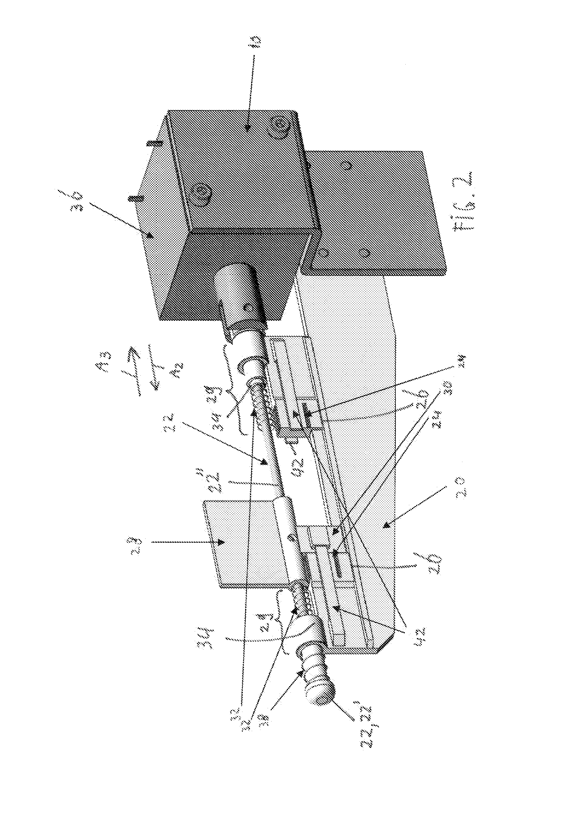 The spring stops 34 may be arranged on the guide 22. The guide 22 may be movable relative to the shuttter frame 20. The guide 22 may comprise a rod 22" movably mounted in the shutter frame 20. The guide 22 may have the shutter blade 28 slidingly connected thereto along the rod 22". The launcher springs 32 may be arranged around the rod 22".