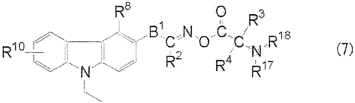 In the above-described Formula (7) and Formula (8), R12 represents a hydrogen atom, an alkyl group or an aryl group. Q2 represents - (CH2)n1-, and n1 represents an integer of 0 to 2. R3, R4 . R17 and R18 have the same definition as R3, R4, R17 and R18 in the above-described Formula (1), respectively. R2 and B1 have the same definition as R2 and B1 in the above-described Formula (2), respectively. R8, R9 and n have the same definition as R8, R9 and n in the above-described Formula (3), respectively, and R10 has the same definition as R10 in the above-described Formula (4). When n is 2, respective R9s may be the same as or different from each other.