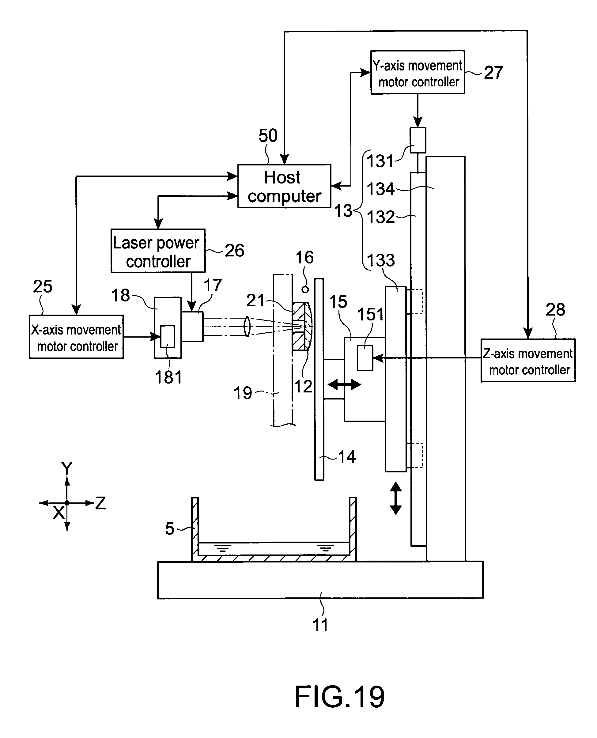 - Fig. 19 is a schematic side view of the structure forming apparatus and a block diagram showing a structure of a control system;