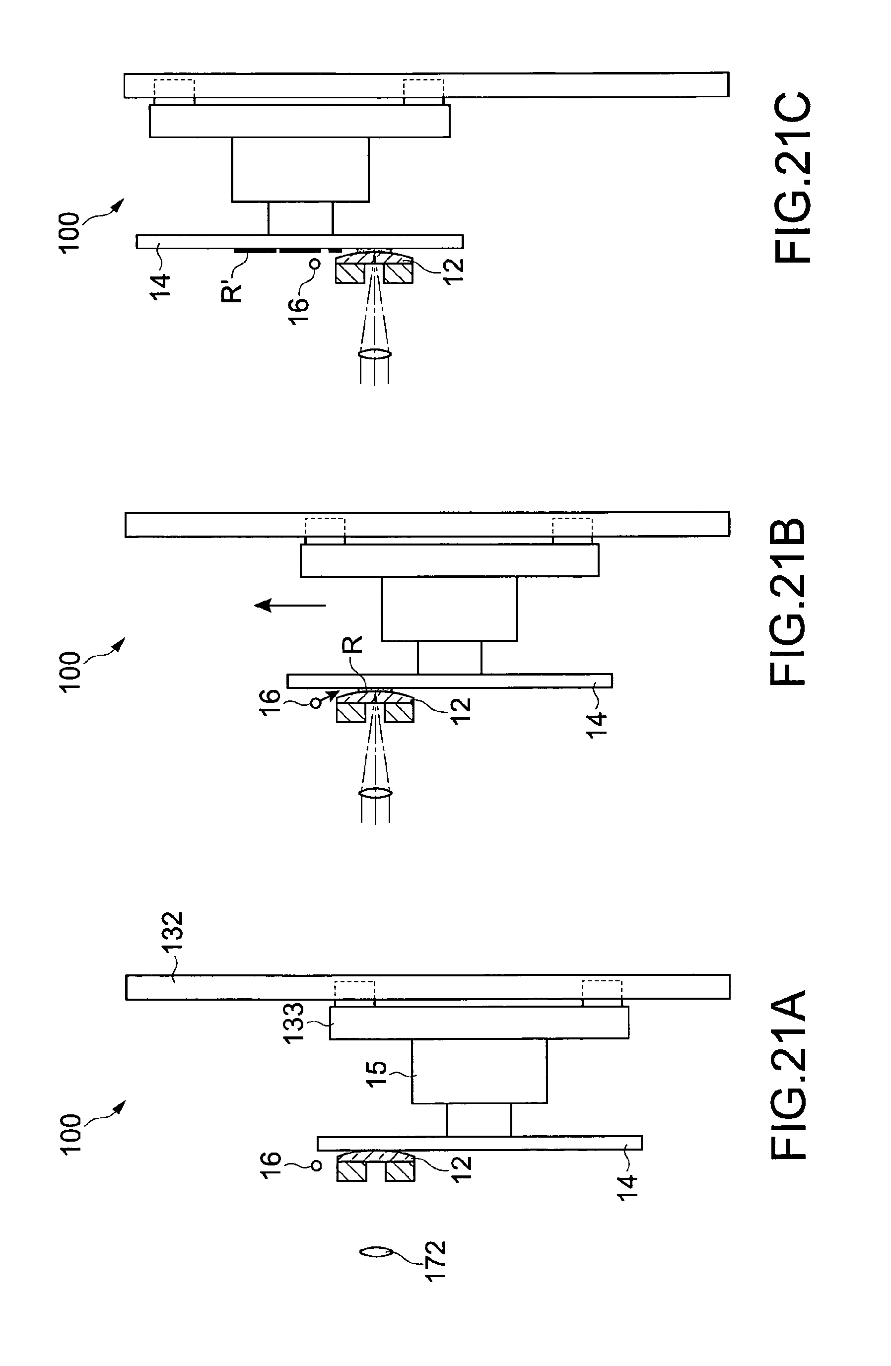 By producing the substrate in parts as described above, there are the following merits. It is assumed that the substrate part 91 is formed from the second side 91c as a side closer to the stage 14. In this case, when a volume on the second side 91c is extremely small and that on the first side 91b is large, a stability of the substrate part 91 on the stage 14 is lowered. Therefore, by setting the material having a larger volume at a position closer to the stage as shown in Fig. 23A, such a problem on the stability can be eliminated.