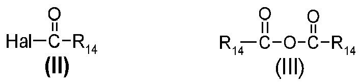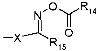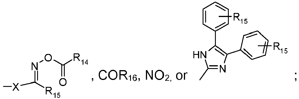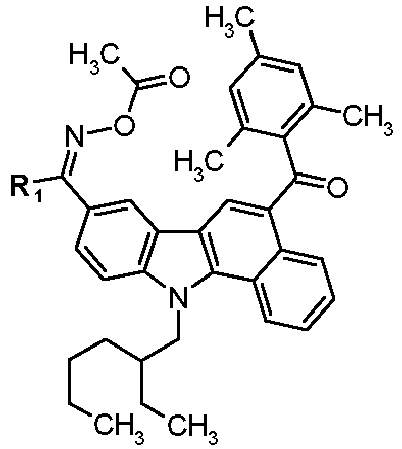 To [11-(2-ethyl-hexyl)-5-nitro-11H-benzo[a]carbazole-8-yl]-o-tolyl-methanone oxime (0.27 g, 0.53 mmol) in THF (4 ml) are added triethylamine (79 mg, 0.78 mmol) and acetyl chloride (66 mg, 0.84 mmol) at 0°C. After stirring for 2 hours, the reaction mixture is poured into ice-water. The crude is extracted with AcOEt, and washed with water and brine. After drying over MgSO4 and concentration, the crude is purified by column chromatography on silica gel eluting with CH2Cl2 to obtain a yellow resin (0.27 g, 94%). The structure is confirmed by 1H-NMR spectrum (CDCl3). δ [ppm]: 0.79-0.99 (m), 1.15-1.48 (m), 2.08 (s), 2.22 (s), 2.23 (m), 4.74 (m), 7.19 (d), 7.36 (t), 7.39 (d), 7.45 (t), 7.59 (d), 7.70-7.79 (m), 8.08 (d), 8.12 (s), 8.63 (d), 8.89 (d), 8.94 (s).