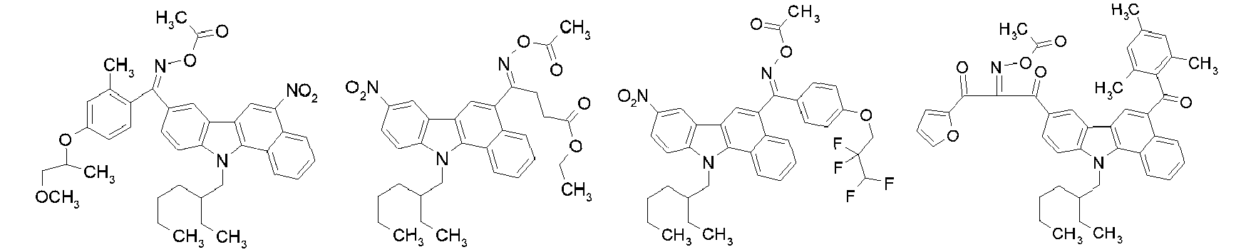 Oxime ester compounds having carbazole moieties are known in the art as photoinitiators. For example