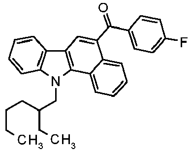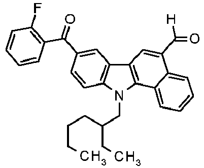 To 11-(2-ethyl-hexyl)-5-nitoro-11 H-benzo[a]carbazole (0.59 g, 1.58 mmol) in o-toluoyl chloride (7 ml) is added zinc oxide (45 mg, 0.55 mmol) at room temperature. The reaction mixture is heated at 100°C. After stirring for 5 min, the reaction mixture is poured into ice-water. The crude is extracted with CH2Cl2, and washed with water and brine. After drying over MgSO4 and concentration, the crude is purified by column chromatography on silica gel eluting with a mixed solvent of n-hexane and CH2Cl2 (1:1) to obtain a yellow resin (0.37 g, 47%). The structure is confirmed by 1H-NMR spectrum (CDCl3). δ [ppm]: 0.79-0.99 (m), 1.19-1.50 (m), 2.25 (m), 2.38 (s), 4.79 (m), 7.33 (t), 7.37 (d) 7.42 (d), 7.47 (t), 7.67 (d), 7.75 (t), 7.78 (t), 8.19 (d), 8.52 (s), 8.66 (d), 8.89 (d), 8.99 (s).