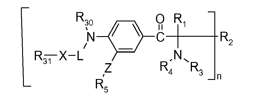 US Patent 6 022 906 describes photoinitiators of the formula Y-X-Ar-CO-C(R