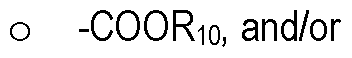 ■ C1-C12 alkyl, C1-C12 alkyloxy, C4-C10 cycloalkyl, C1-C12 alkenyl, C4-C10 cycloalkenyl, C4-C10 cycloalkenyl, C2-C12 alkynyl, and/or C4-C10 cycloalkynyl, each of which being optionally substituted with one or more: