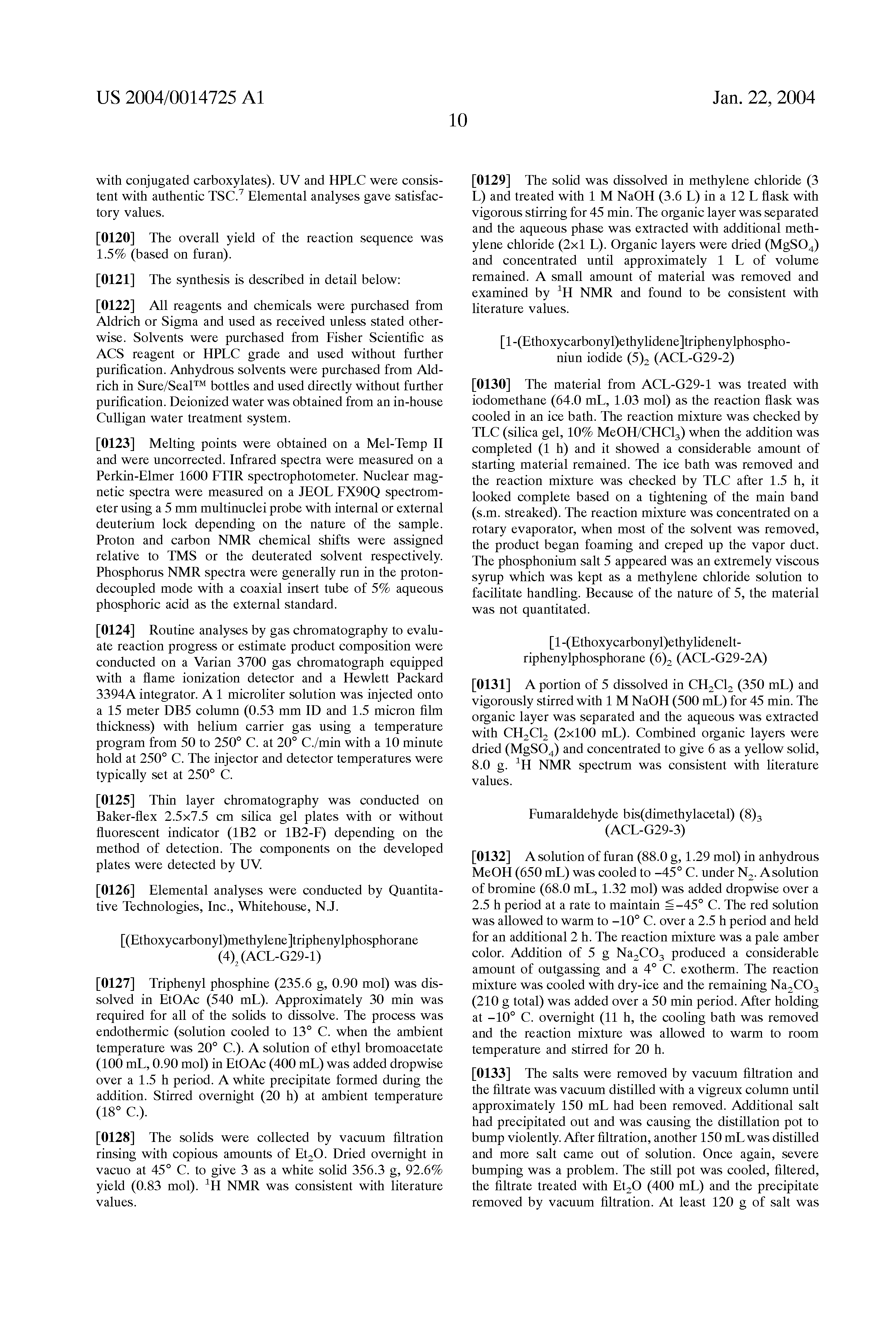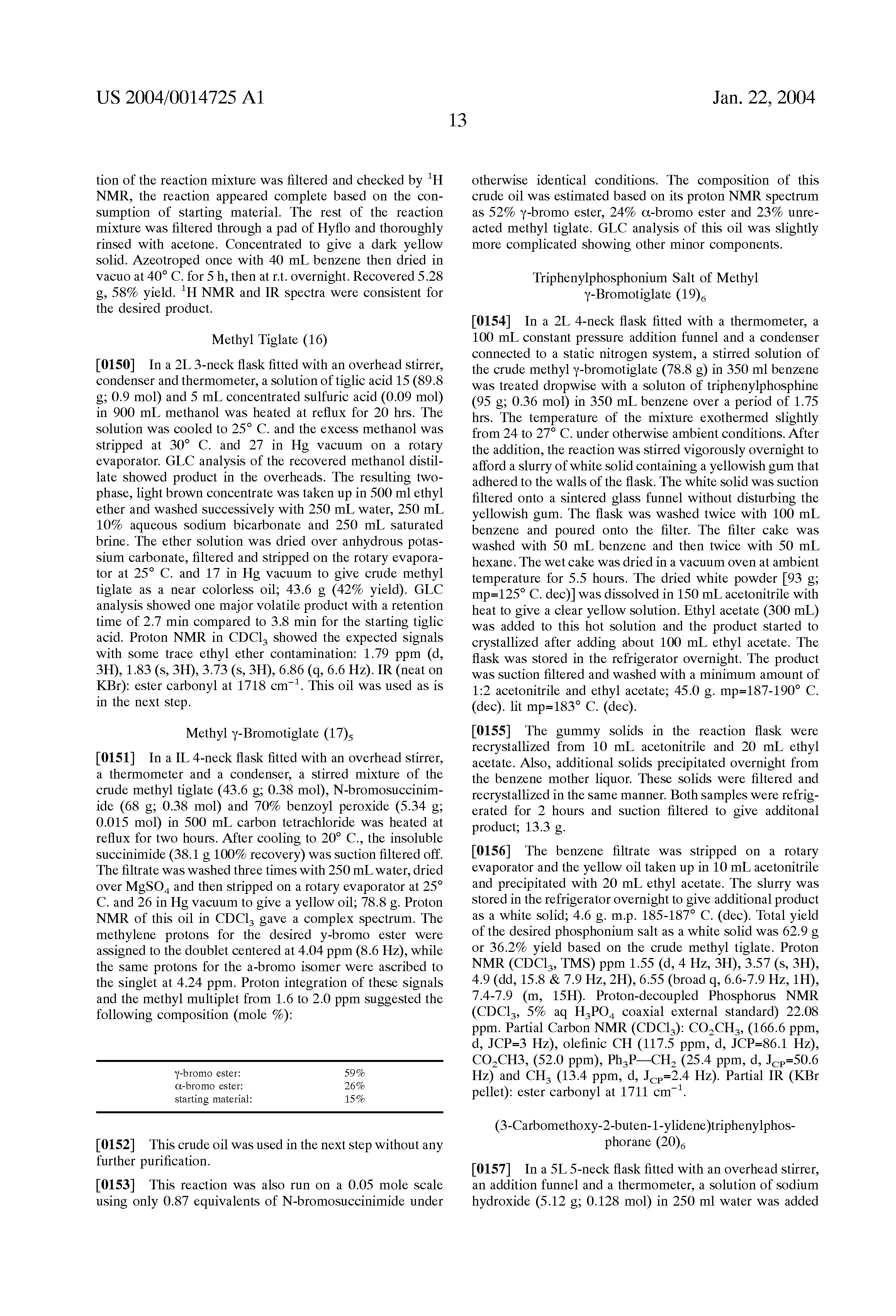 After drying in the vacuum oven at 35-45° C. for 22.5 hrs, a constant weight was obtained; 107.8 g. mp=144-160° C. lit mp=145-165° C. Proton NMR was similar to the previous spectrum of the desired ylide considering the differences in NMR field strength. Carbon NMRshowed the methyl carbon's at 50.2 and 11.8 ppm with a complex aromatic region and no obvious signals for the olefinic carbons and the ylide carbon.
