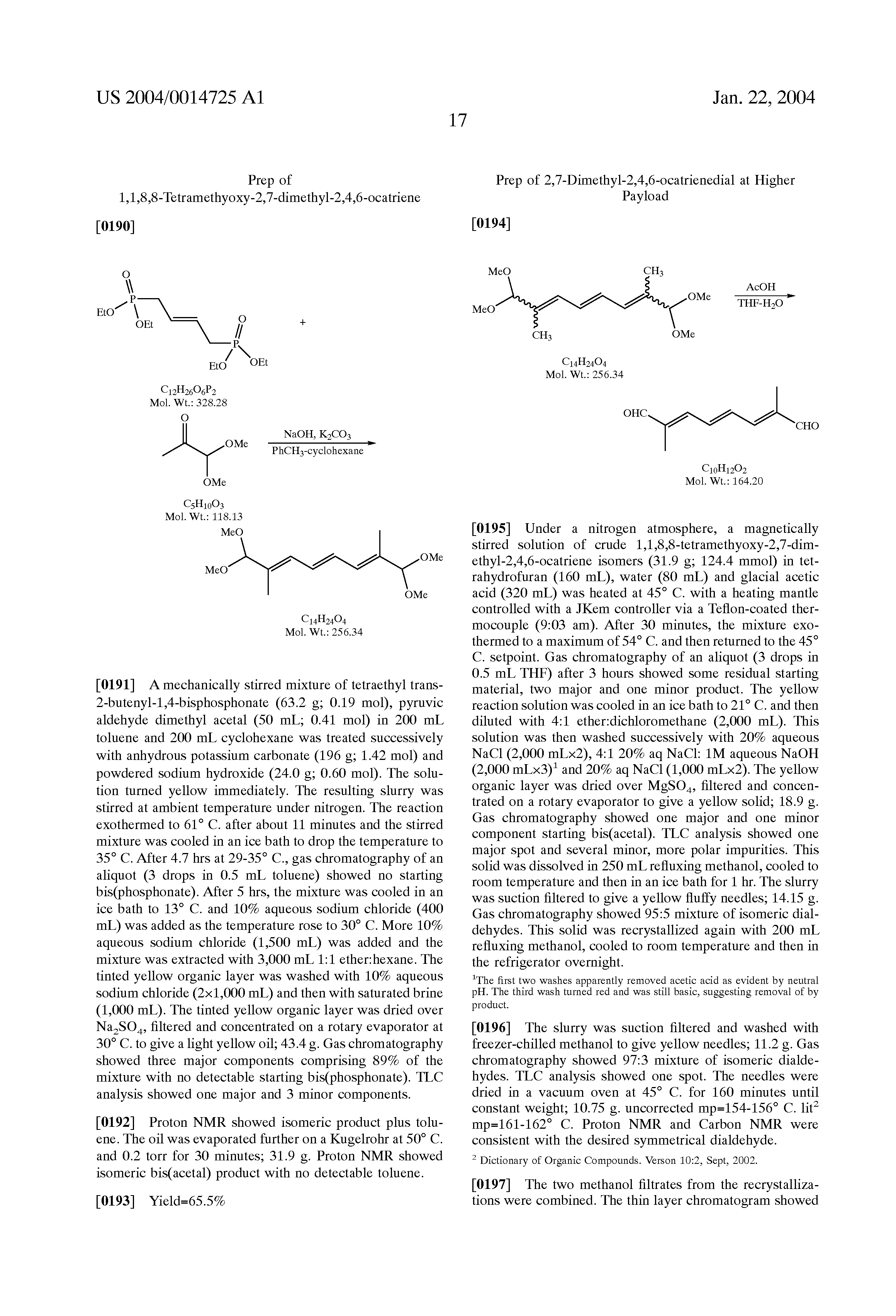 U.S. Pat. No. 5,107,030 relates to a method of making 2,7-dimethyl-2,4,6-octatrienedial and derivatives thereof.
