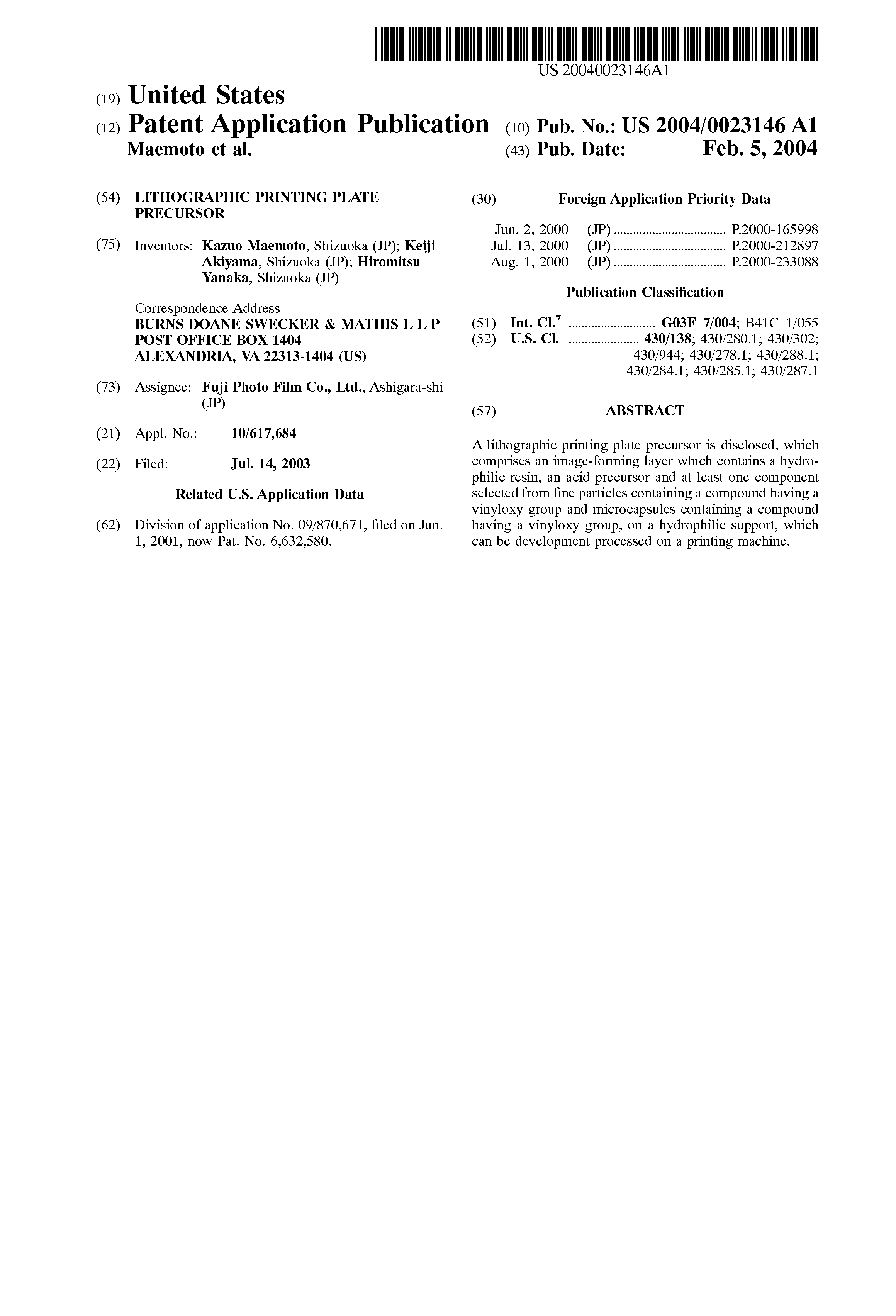 (3) A lithographic printing plate precursor which comprises a hydrophilic support having provided thereon an image-forming layer containing fine particles containing a thermosetting compound, and a hydrophilic resin.
