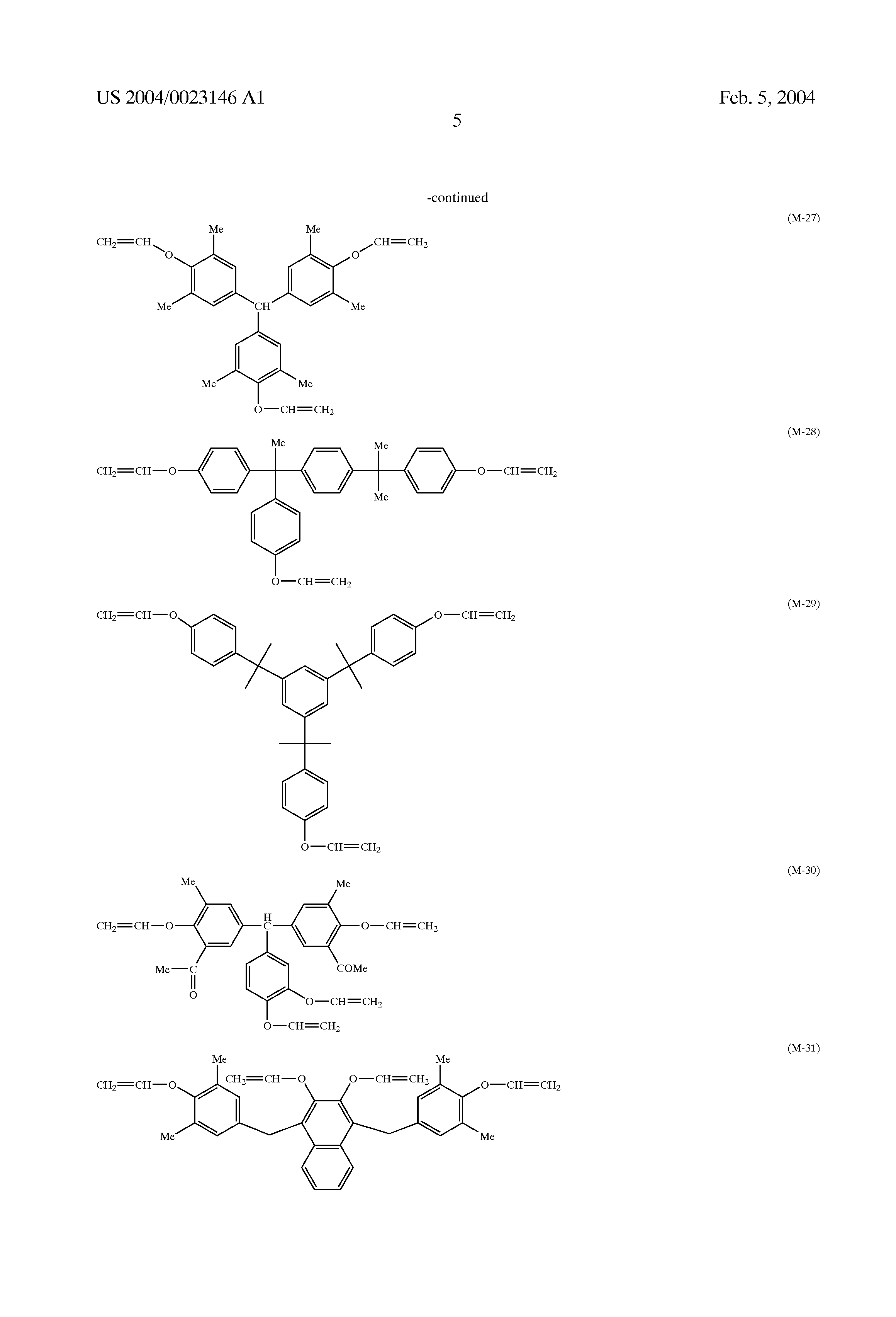 The specific examples of the compounds represented by formula (II) include ethylene glycol divinyl ether, triethylene glycol divinyl ether, 1,3-butanediol divinyl ether, tetramethylene glycol divinyl ether, neopentyl glycol divinyl ether, trimethylolpropane trivinyl ether, trimethylolethane trivinyl ether, hexanediol divinyl ether, 1,4-cyclohexanediol divinyl ether, tetraethylene glycol divinyl ether, pentaerythritol divinyl ether, pentaerythritol trivinyl ether, pentaerythritol tetravinyl ether, sorbitol tetravinyl ether, sorbitol pentavinyl ether, ethylene glycol diethylene vinyl ether, triethylene glycol diethylene vinyl ether, ethylene glycol dipropylene vinyl ether, triethylene glycol diethylene vinyl ether, trimethylolpropanetriethylene vinyl ether, trimethylolpropanediethylene vinyl ether, pentaerythritol diethylene vinyl ether, pentaerythritol triethylene vinyl ether, pentaerythritol tetraethylene vinyl ether, 1,2-di(vinyl ether methoxy)benzene, 1,2-di (vinyl ether ethoxy)benzene, and the following compounds represented by formulae (M-1) to (M-41), but the present invention is not limited thereto.