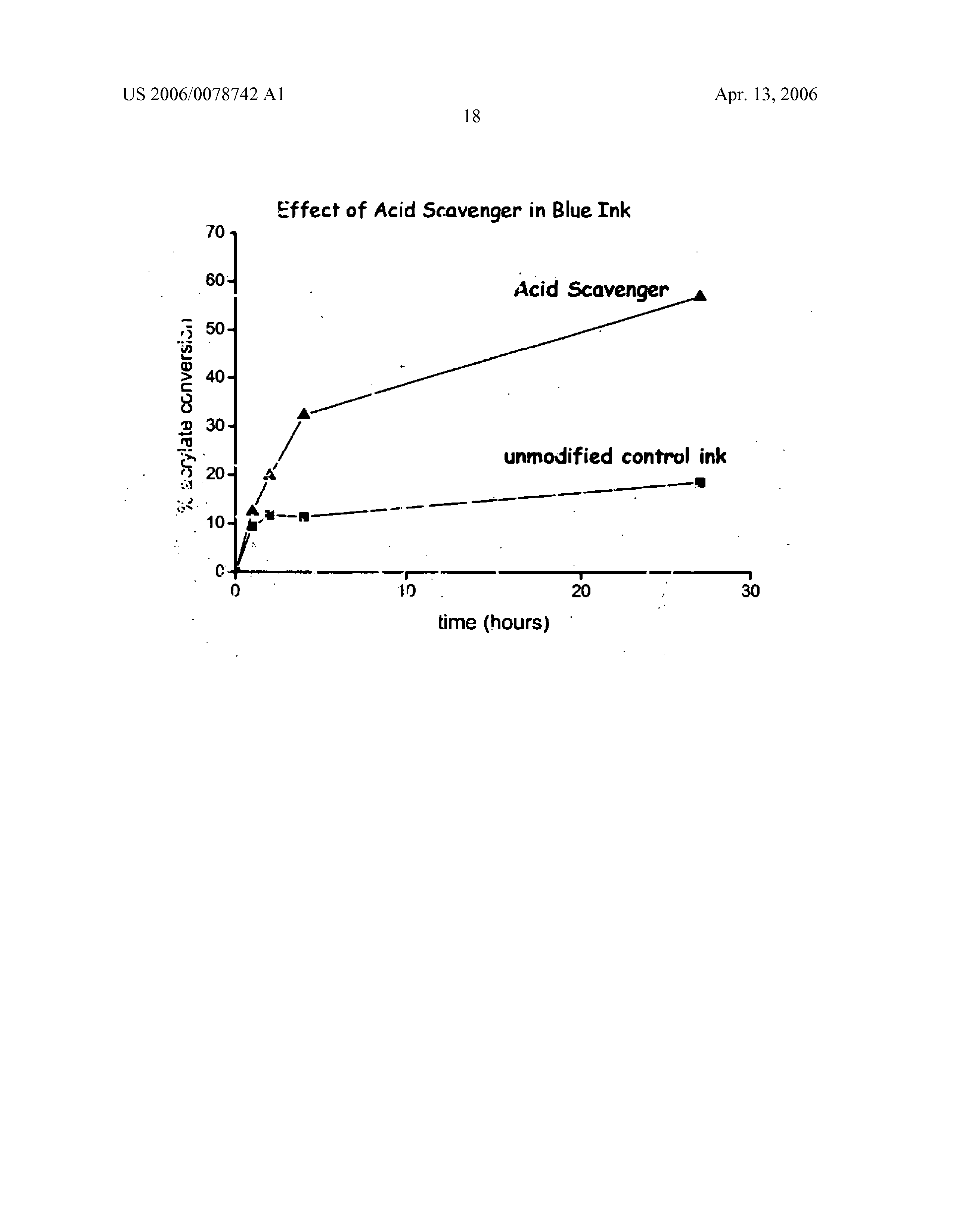It is seen that the adhesive in contact with the ink containing an acid scavenger showed faster cure than the sample in contact with the unmodified control ink.