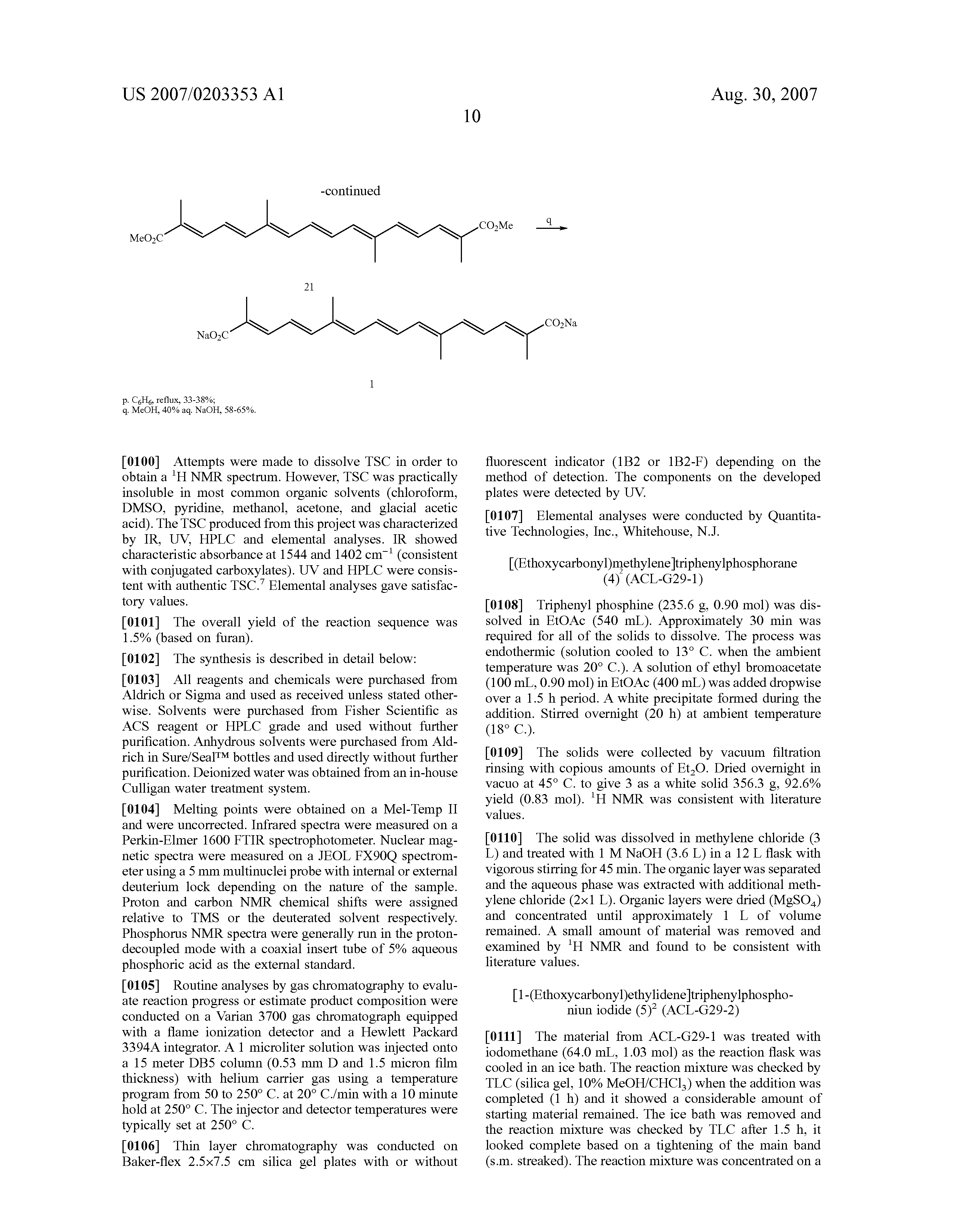 Performing the Craw and Lambert analysis on the trans sodium crocetin of commonly owned U.S. Pat. No. 6,060,511 (TSC made by reacting naturally occurring saffron with sodium hydroxide followed by extractions which selected primarily for the trans isomer), the value obtained is typically around 7-7.5 (a value of 8.4 was observed once). Performing that test on the synthetic TSC of the subject invention, that ratio is typically greater than 8.5 (e.g. 8.5 to 10), advantageously greater than 9 (e.g. 9-10), most advantageously greater than 9.5. For the TSC synthesized according to the improved method of Example 5, the ratio is typically greater than 9.5 (e.g. 9.5-12). The synthesized material is a “purer” or highly purified trans isomer.