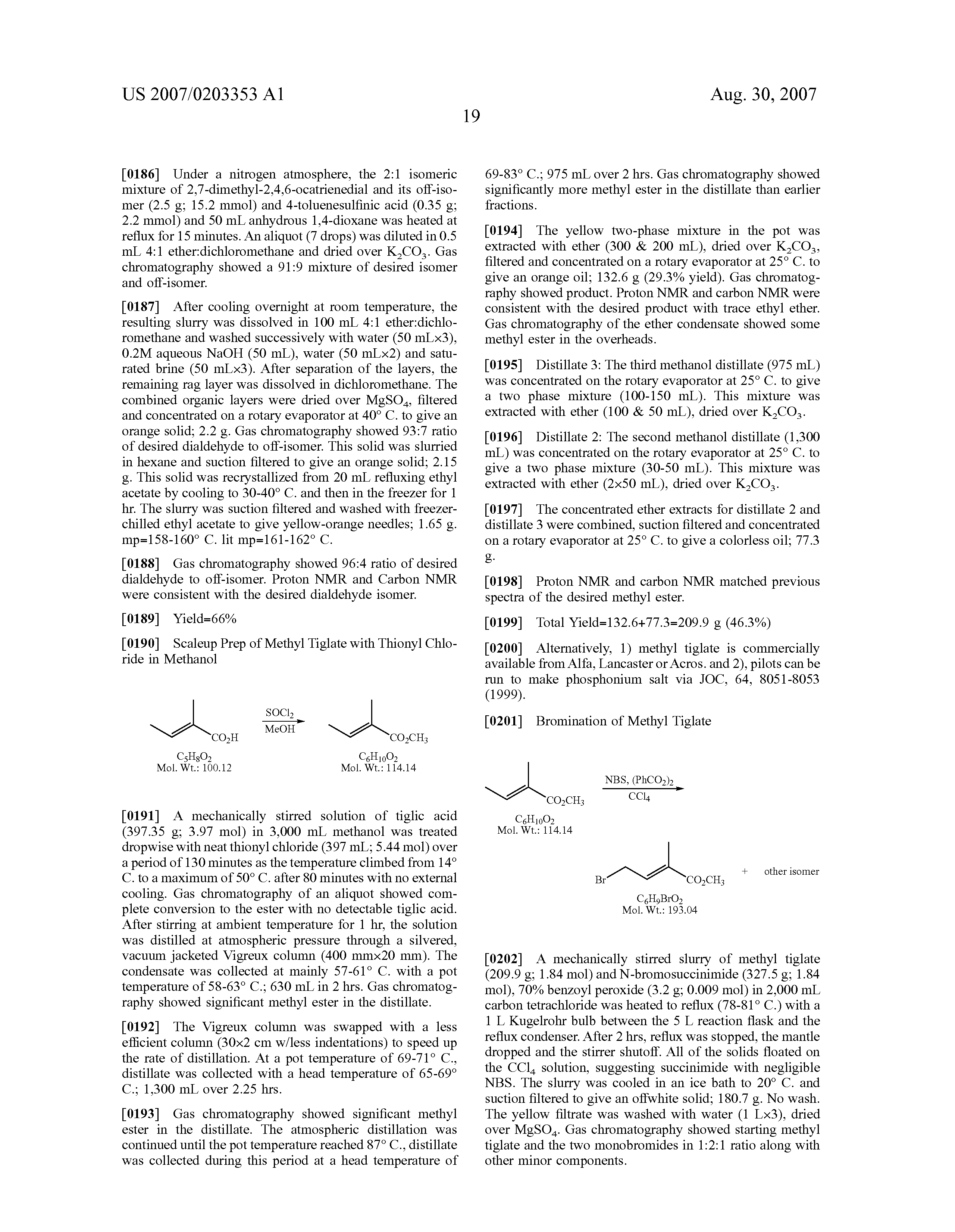 Yield based on starting methyl tiglate=100×322.55/(455.32×1.84×322.6/327.1)=39.0%