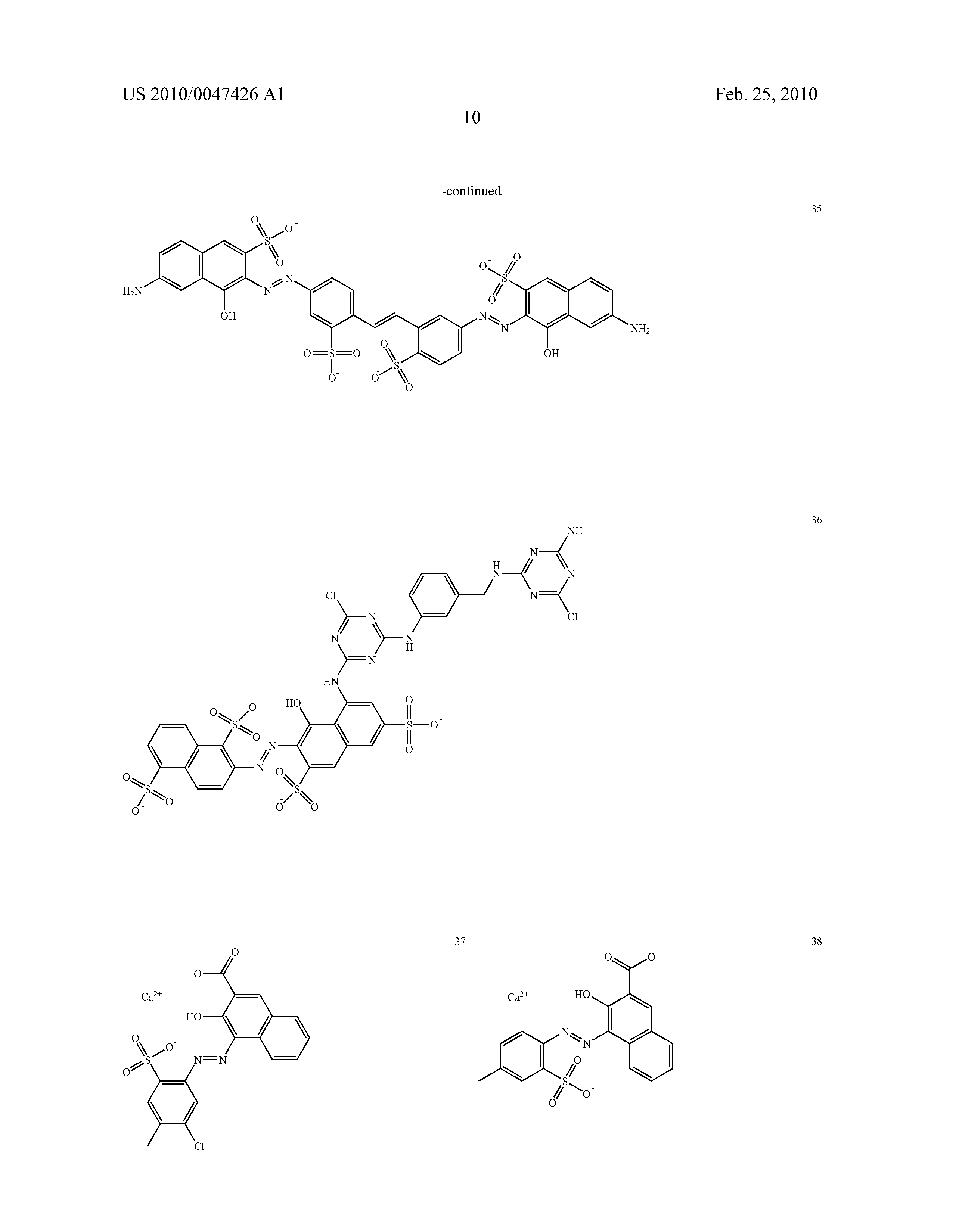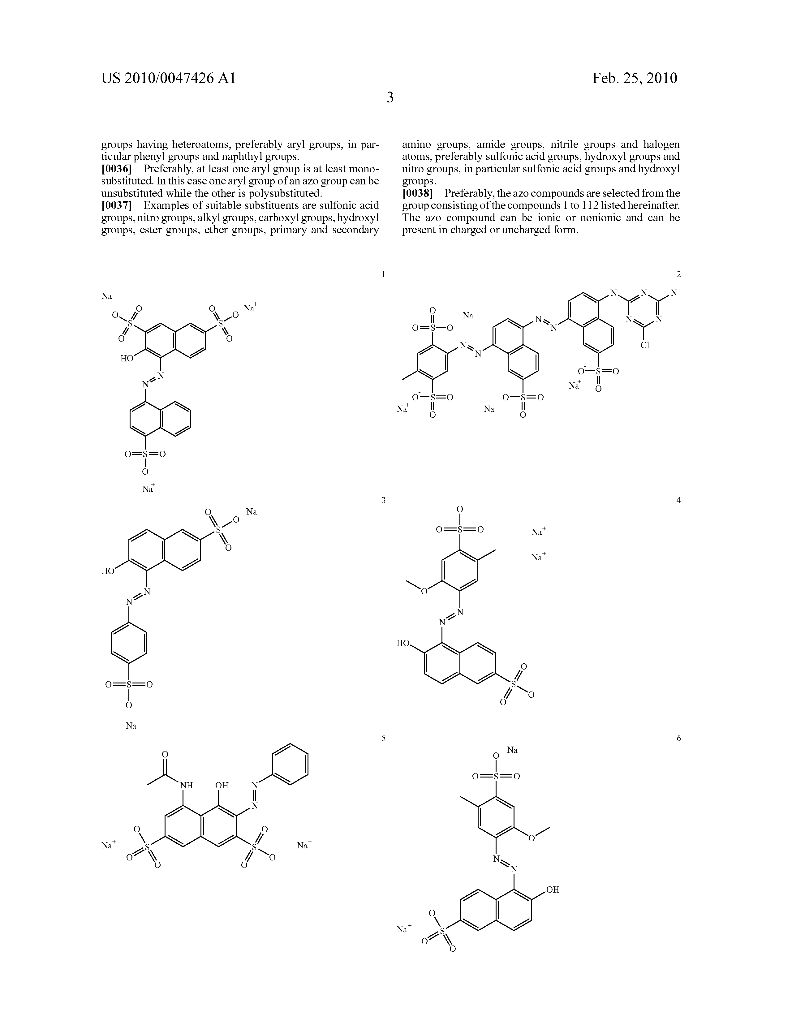 Preferably, the azo compounds are selected from the group consisting of the compounds 1 to 112 listed hereinafter. The azo compound can be ionic or nonionic and can be present in charged or uncharged form.