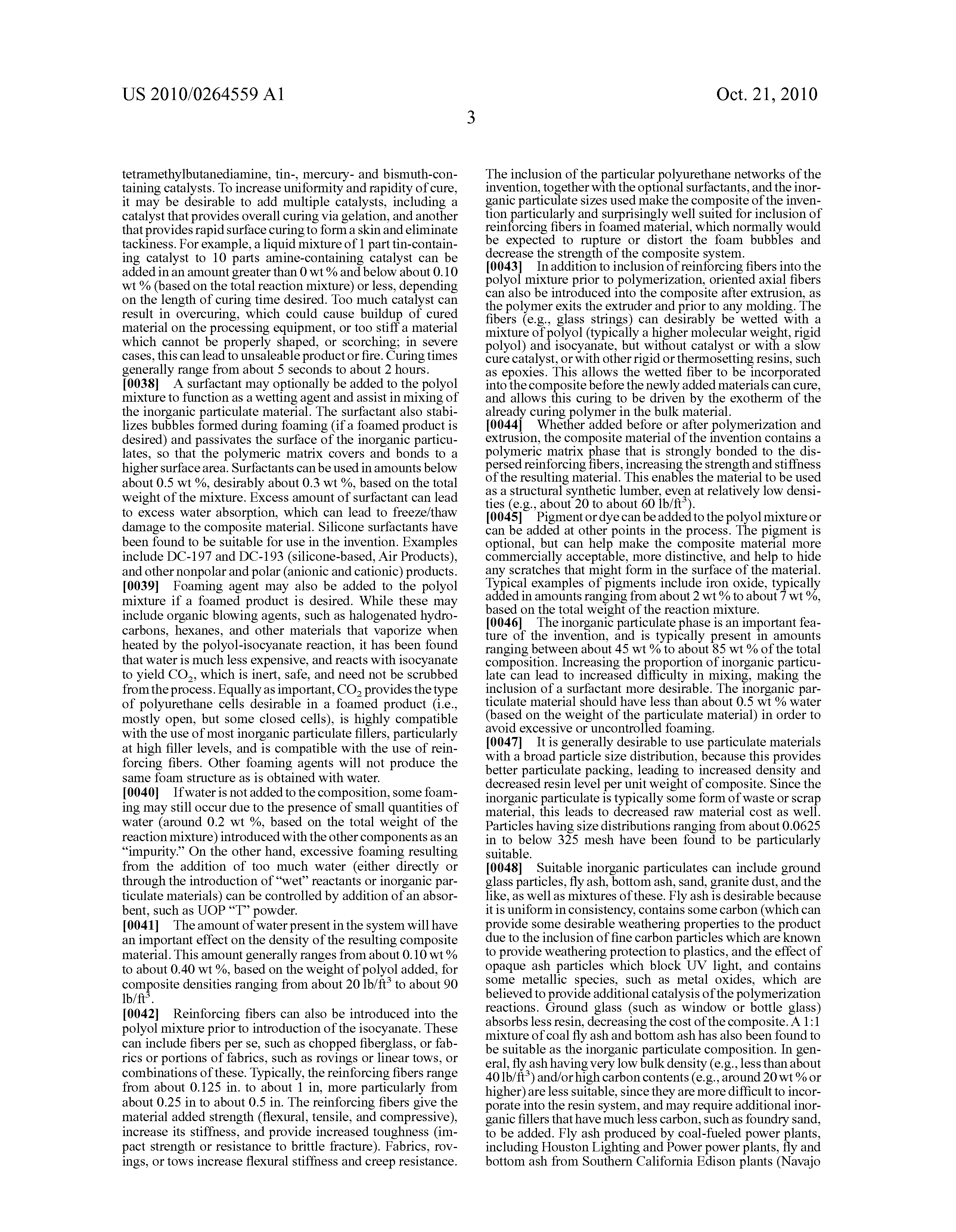 As indicated above, the composite of the invention can desirably be prepared by mixing the polyols together (if multiple polyols are used), and then mixing them with various additives, such as catalysts, surfactants, and foaming agent, and then adding the inorganic particulate phase, then any reinforcing fiber, and finally the isocyanate.