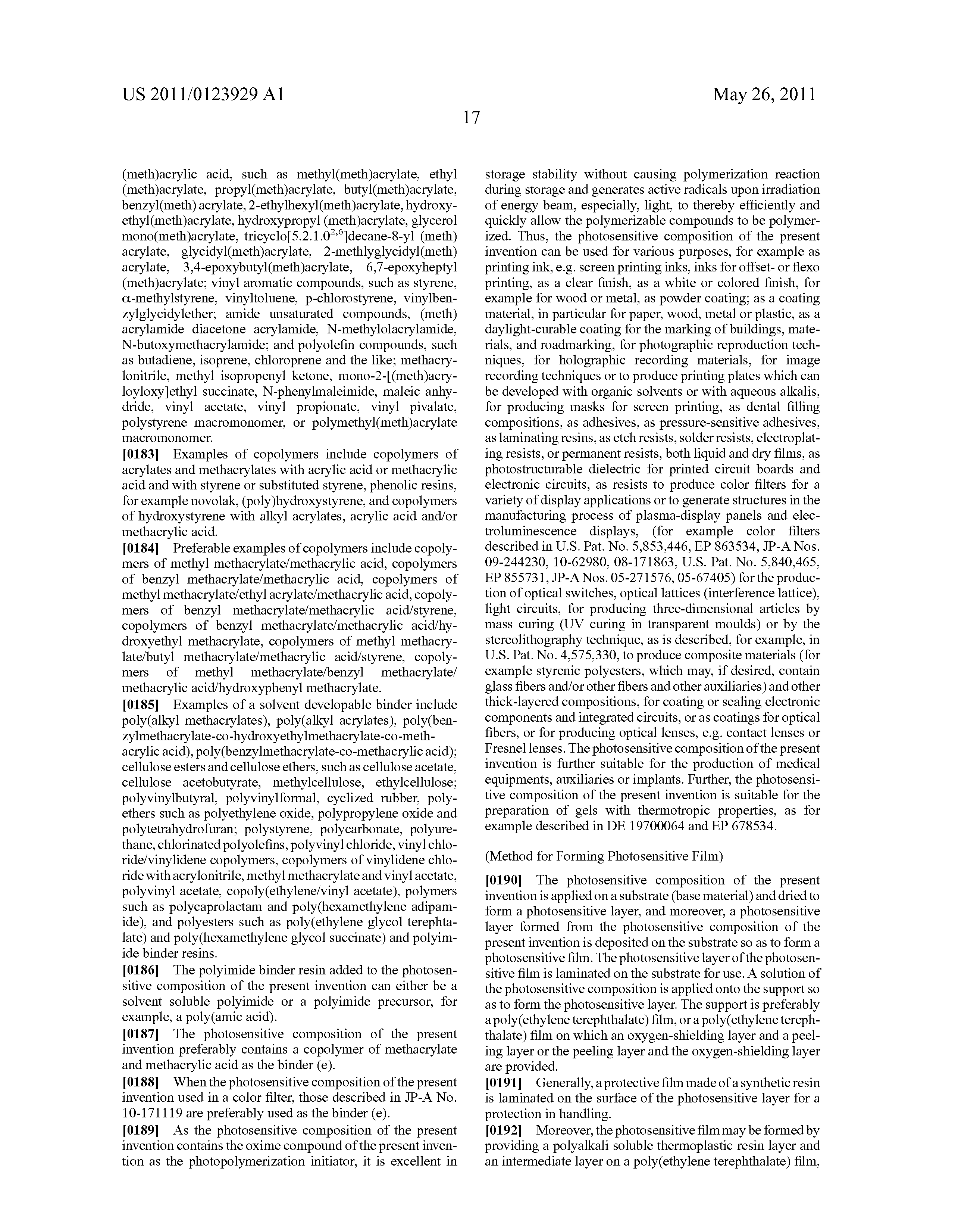 For example, the resin component of the photosensitive composition is improved. As such improvement, for example, there have been proposed methods in which a copolymer containing, as a monomer component, (meth)acrylic acid, (meth)acrylate having an ethylene oxide molecular chain, and a styrene derivative is used as a binder for dispersing a pigment (see, for example, Patent Literatures 9 to 12).