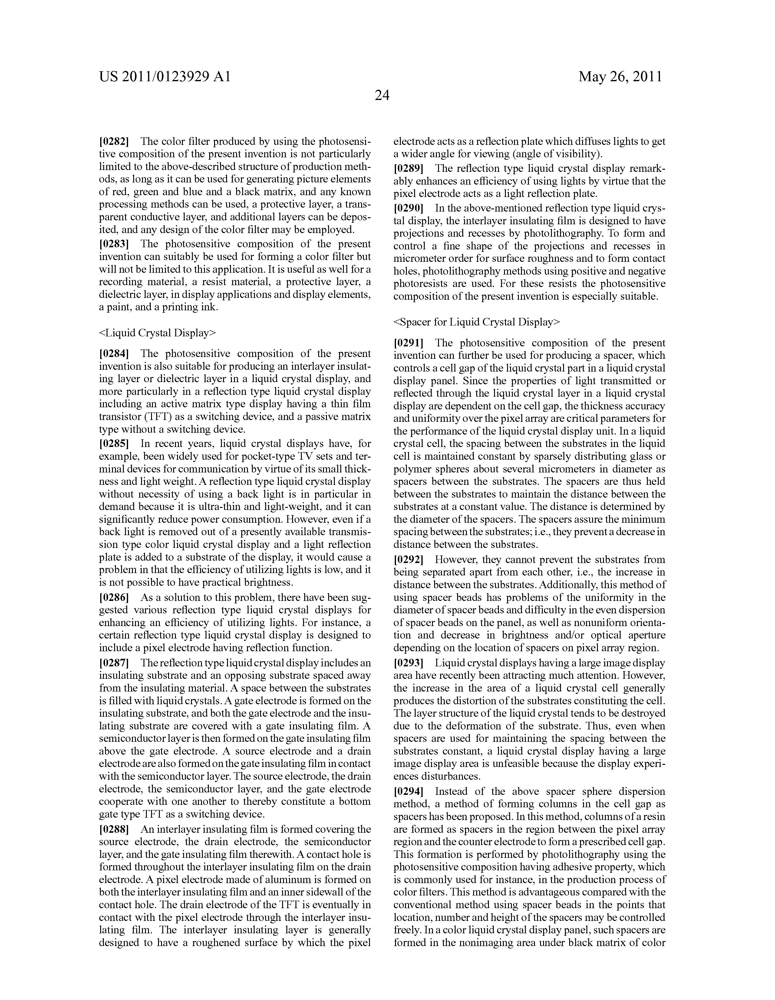In order to reduce the cost for the liquid crystal display device, the constituent components (e.g., a color filter and a glass substrate) are required to be reduced in cost. When the cost for the color filter is reduced, it is necessary to reduce the coating amount of the photosensitive composition.