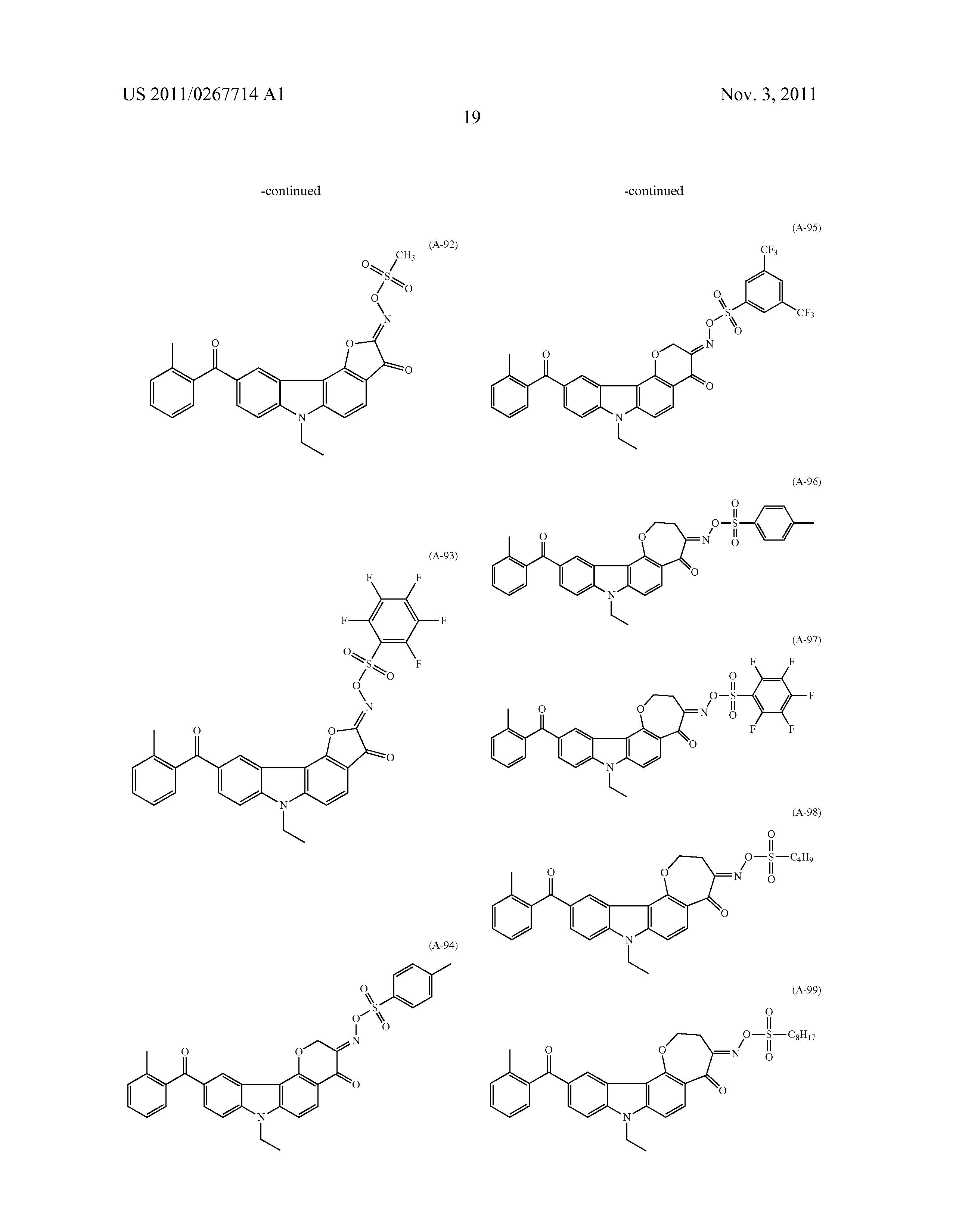 It can be seen from FIG. 8 that the planographic printing plate precursors of Examples 7-1 to 7-15, whose photosensitive layers each contain the specific oxime compound of the invention, are highly sensitive, and exert excellent storage stability and excellent printing durability.