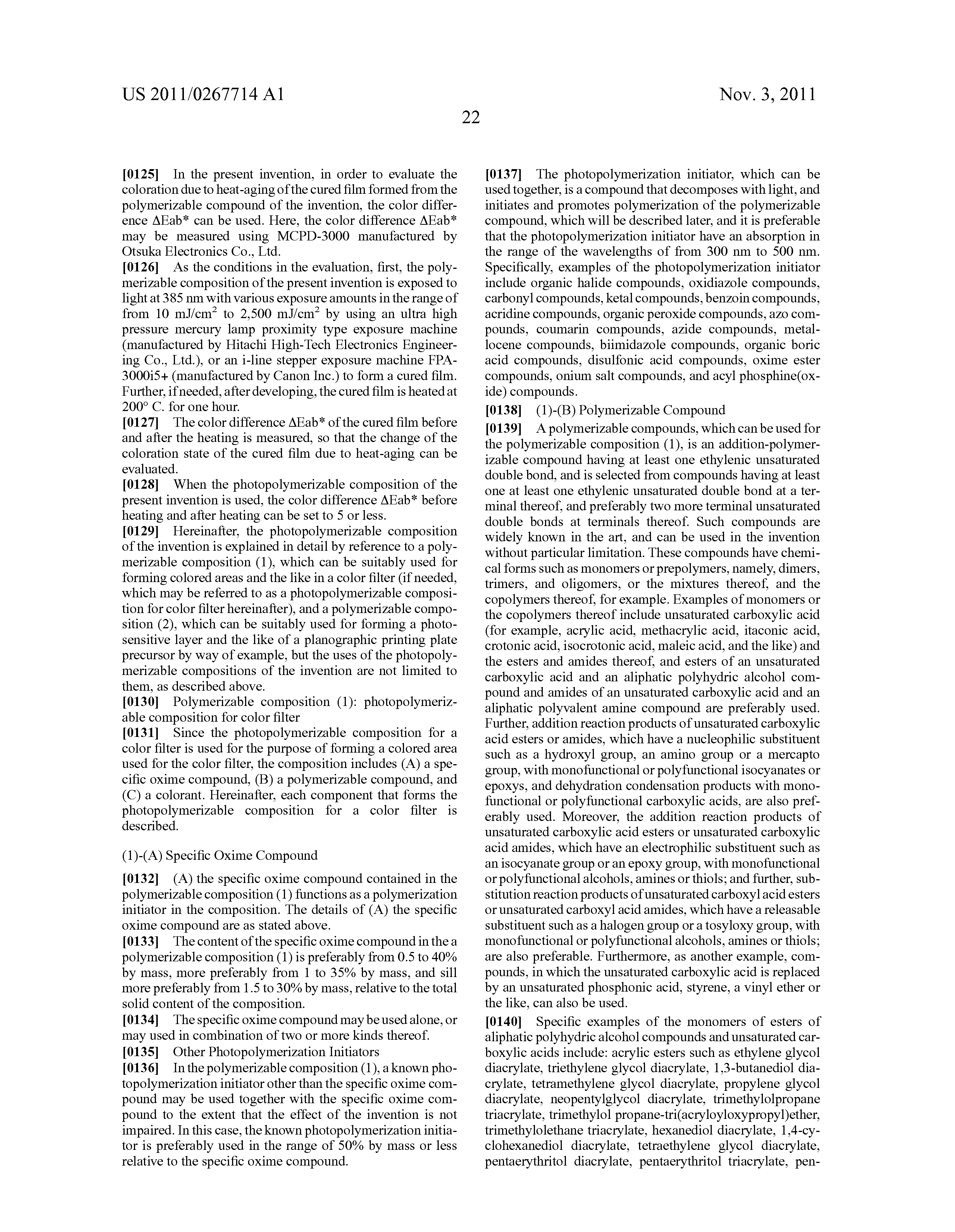 Furthermore, a colored radiation-sensitive composition for color filters, which contains an oxime compound, is disclosed (for example, JP-A No. 2005-202252); however, the storage stability and the sensitivity to lights of short wavelengths were still insufficient.