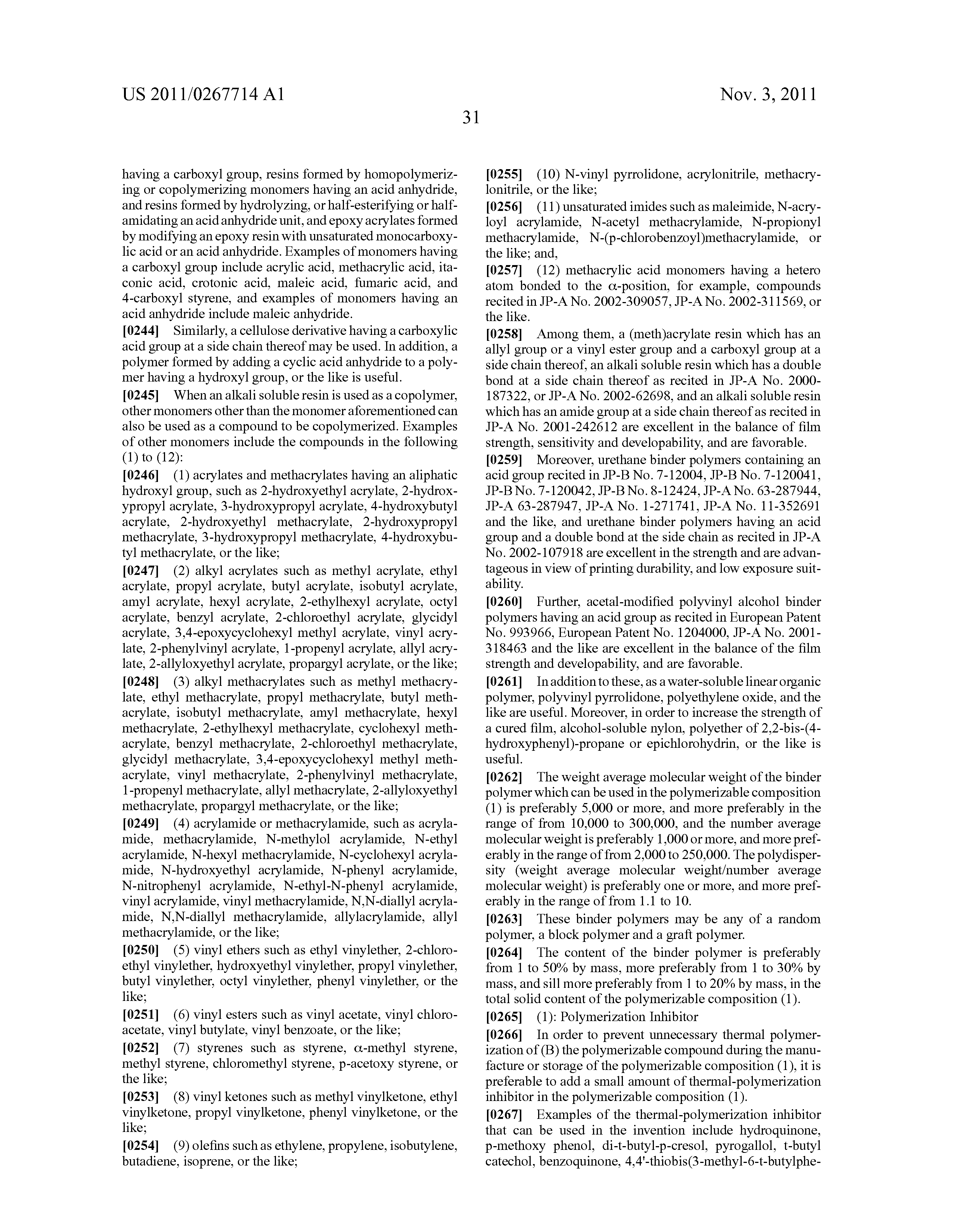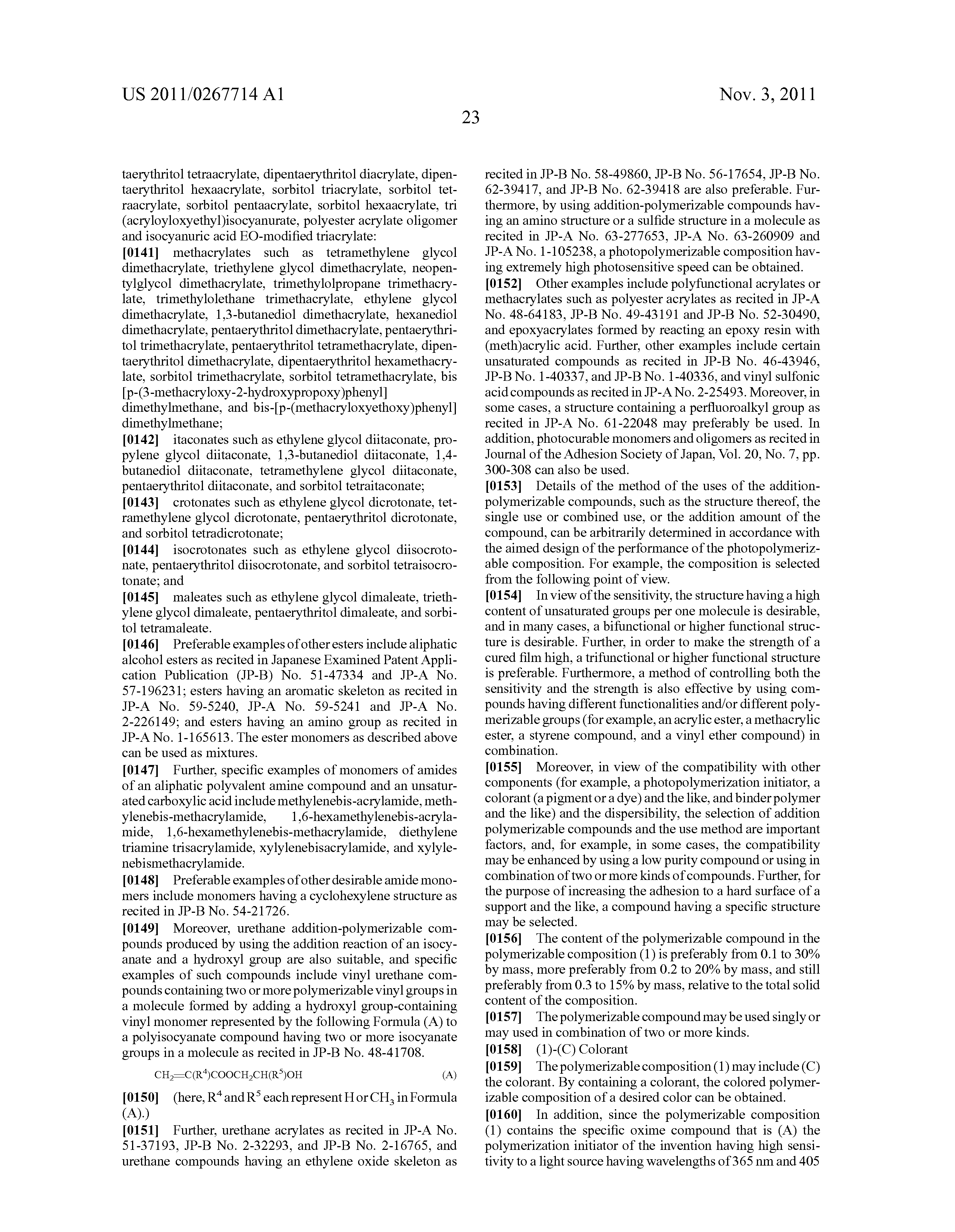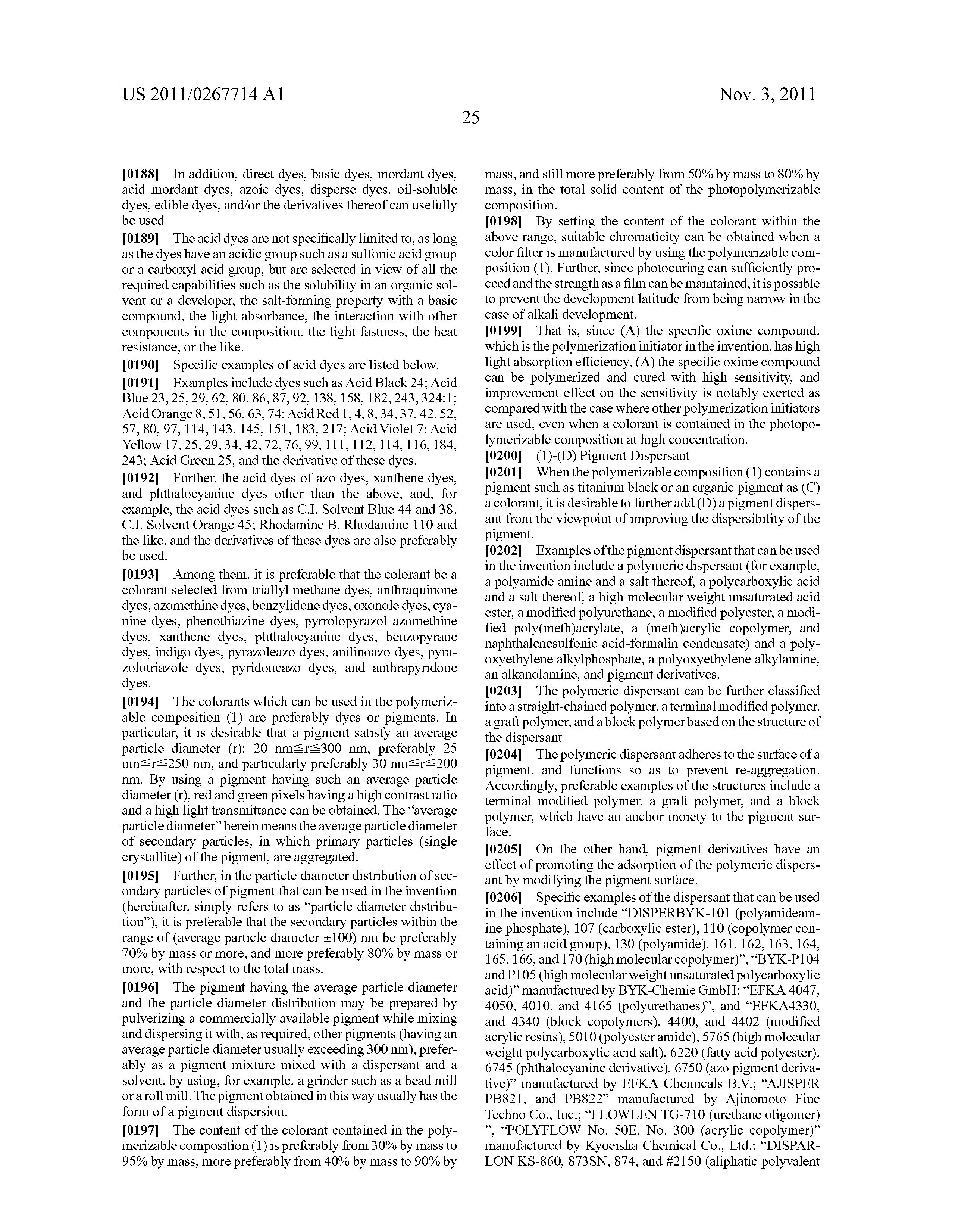 Further, currently, photopolymerizable compositions which have excellent storage storability and excellent sensitivity to light in short wavelengths such as 356 nm and/or 405 nm or the like are also desired.