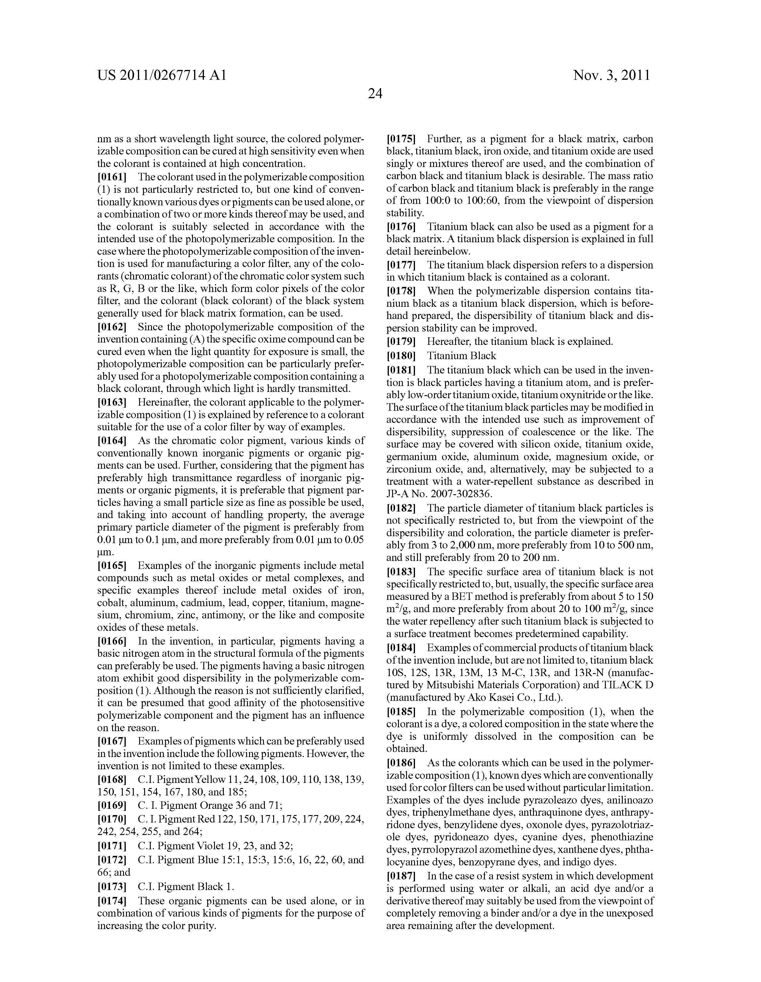 According to a fifth aspect of the present invention, there is provided a novel oxime compound that is suitably used for the polymerizable compound.