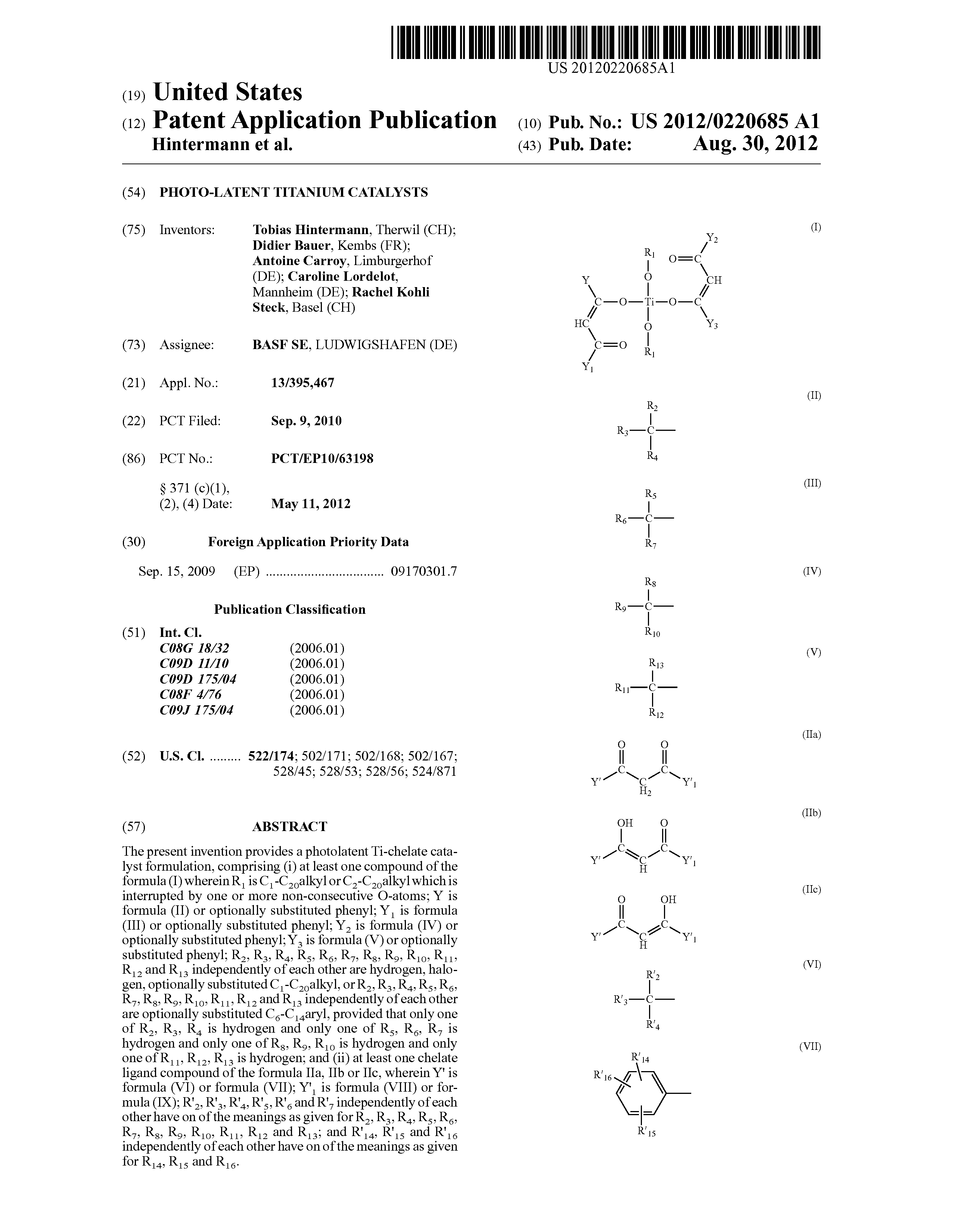 The photolatent catalytic solution 3 is composed by a mixture of catalyst and ligands CAS 13988-67-5 (ration 80/20) dissolved in butylacetate.