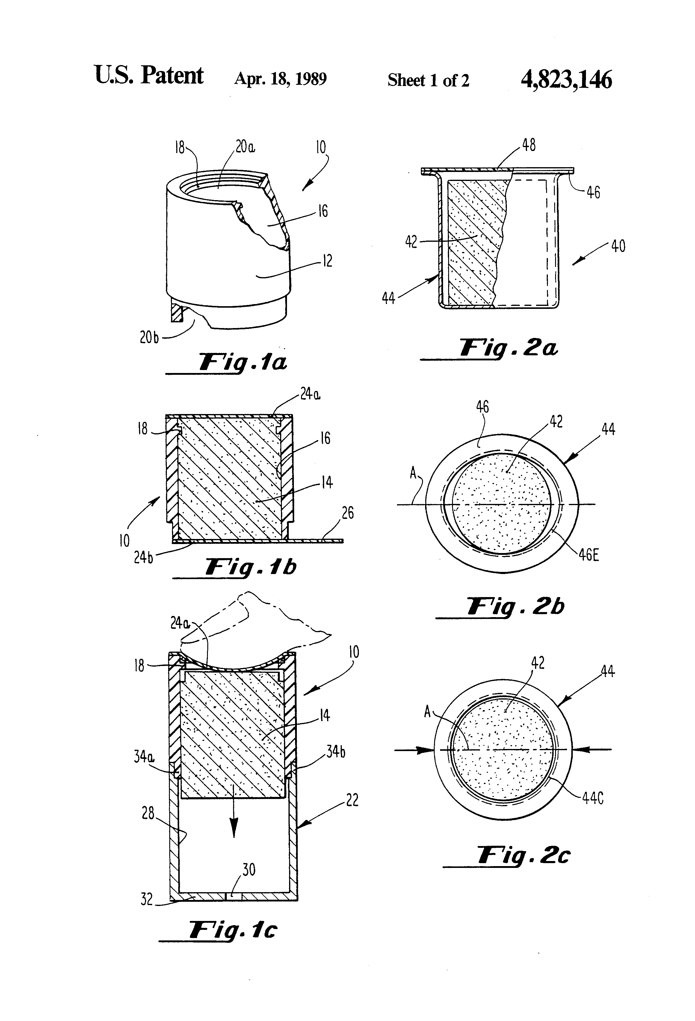 Referring now to the drawings, wherein like characters designate like or corresponding parts throughout the several views, there is shown in FIGS. 1a, 1b and 1c a cartridge 10 and method of using the cartridge 10 for phase change ink in an ink jet apparatus according to the present invention. As shown in FIGS. 1a and 1b, the cartridge 10 is comprised of a member 12 (substantially tubular-shaped as shown in FIG. 1) which is adapted to receive a solid pellet 14 of phase change or hot melt ink within a cavity 16. It should be noted at this juncture that the terms "phase change" and "hot melt" as used herein are interchangeable, and are intended to portray an ink which is both solid at room temperature and yet jettable in a liquid form at an elevated temperature above the ambient.