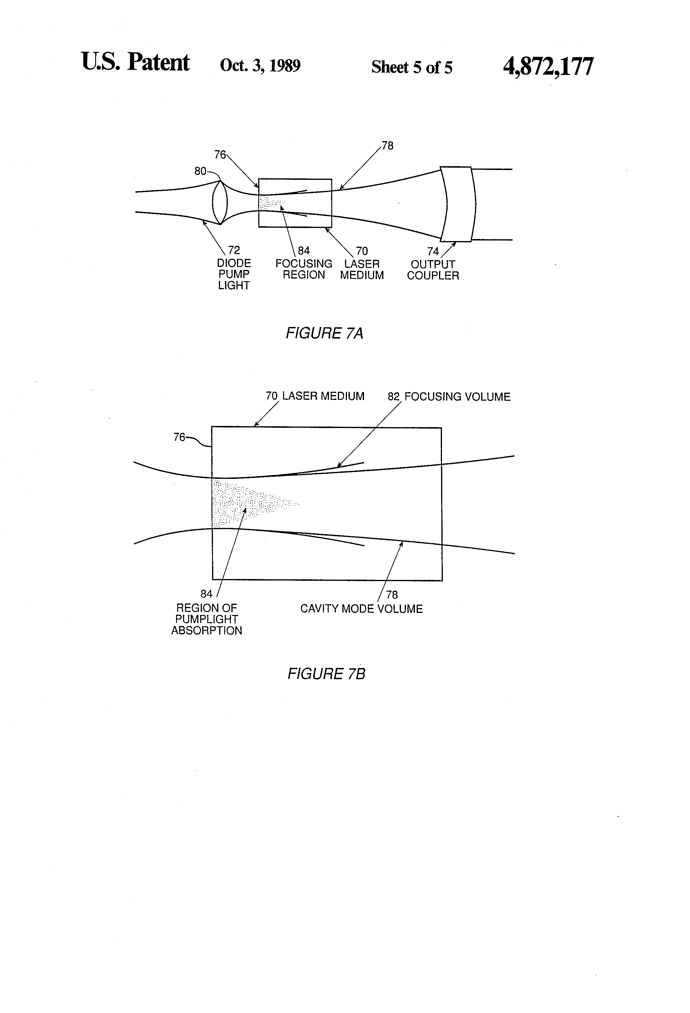 FIGS. 7a-b illustrate the mode matching pumping scheme of the invention in which the region of pump light absorption in the focused pump volume is matched to the cavity mode volume.