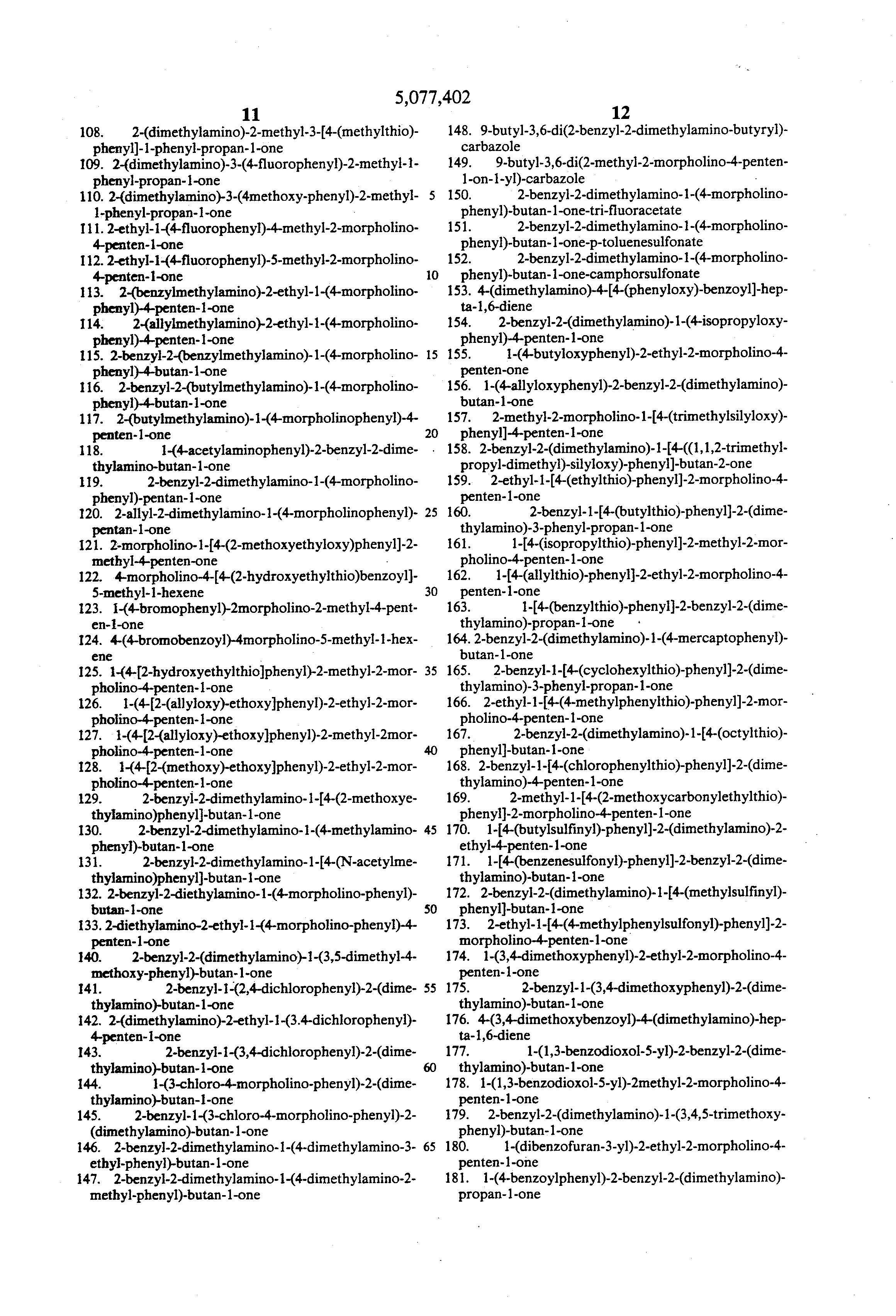 21. 2-benzyl-2-(dimethylamino)-1-[4-(methylthio)-phenyl]-4-penten-1-one