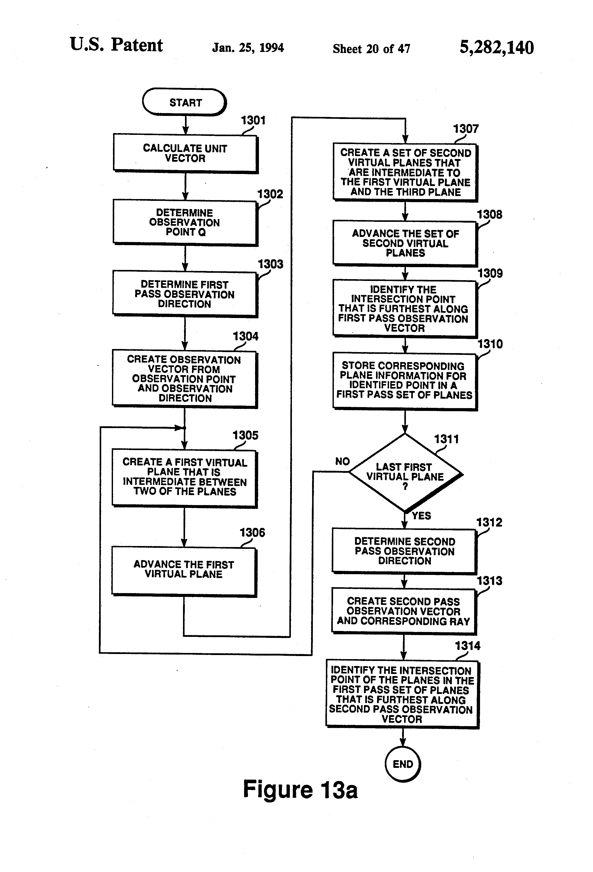FIG. 13a is a flowchart illustrating an efficient method for determining the location of movement of a vertex, as may be utilized by the preferred embodiment of the present invention.