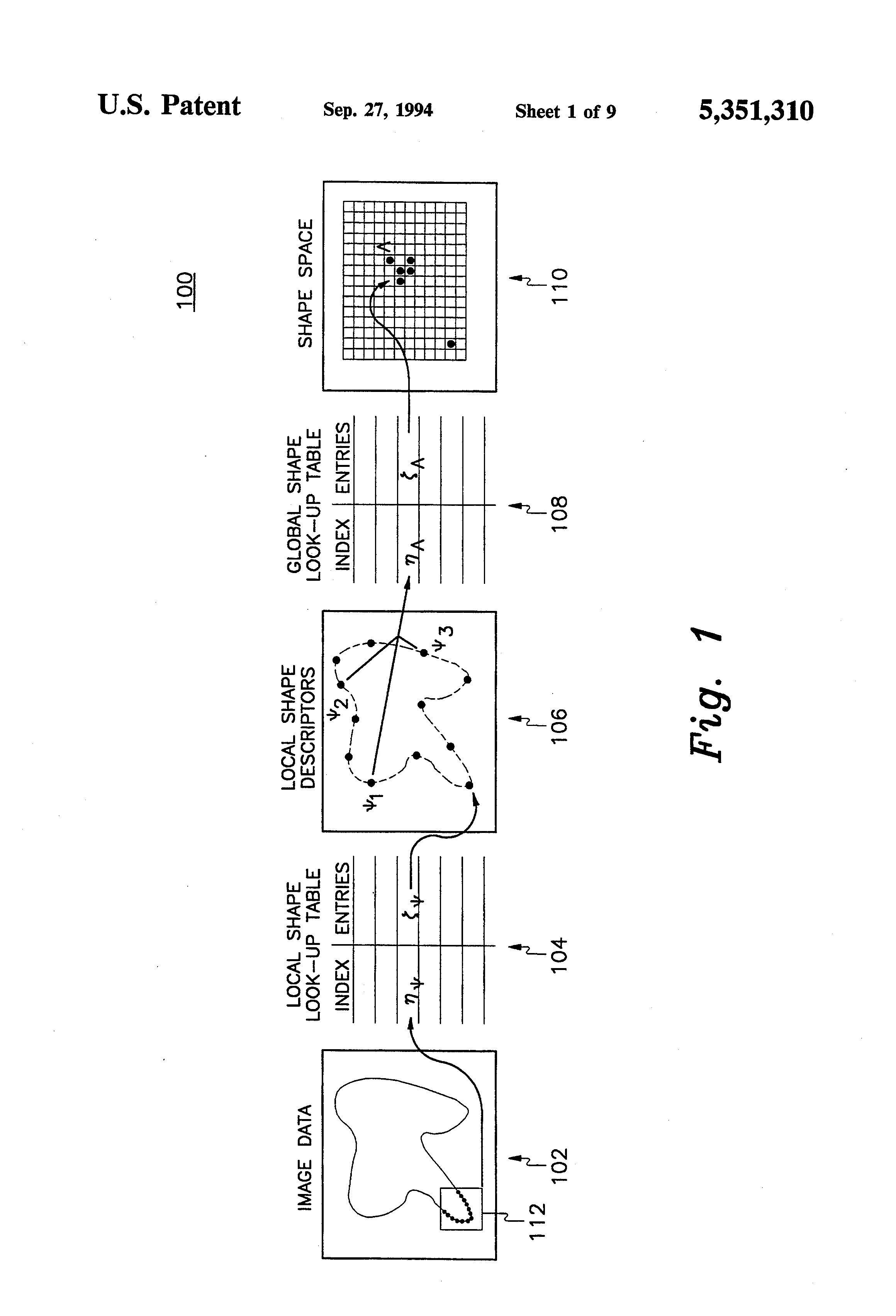 In a FOR LOOP enclosed by blocks 306 and 330, data corresponding to each of the curves desired to be recognized are inputted to the table 104. In this document, these curves are called "local shapes" and are accorded a specific local shape descriptor label for identification purposes.