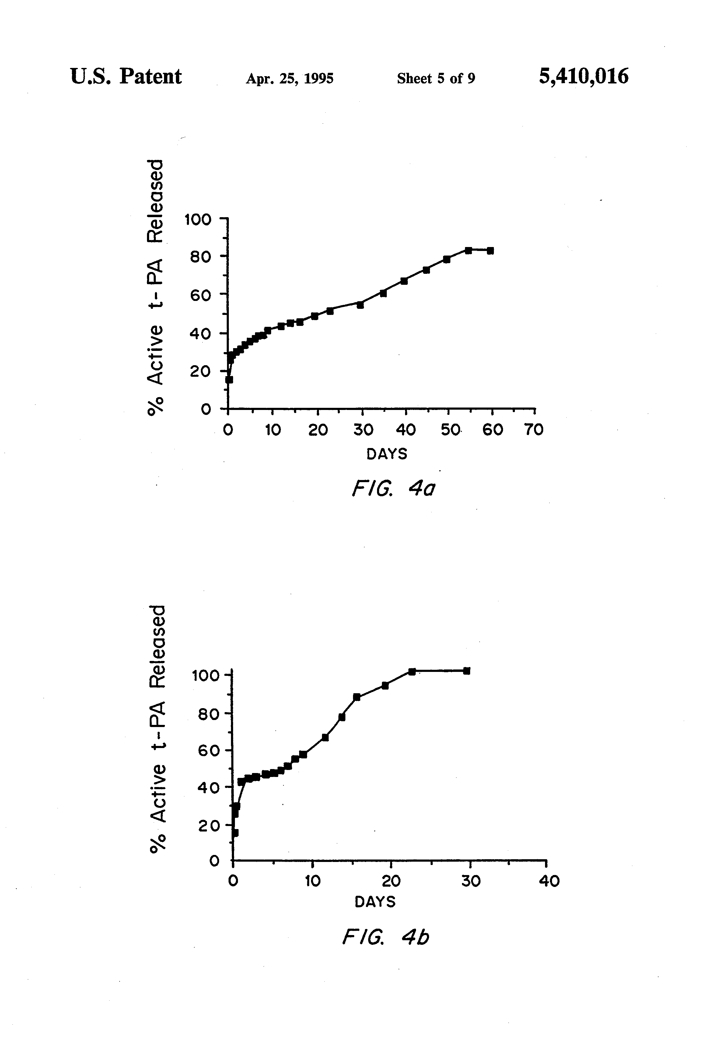 FIG. 4B shows release of active recombinant tPA from PEG 4K glycolide diacrylate (4KG) hydrogel.