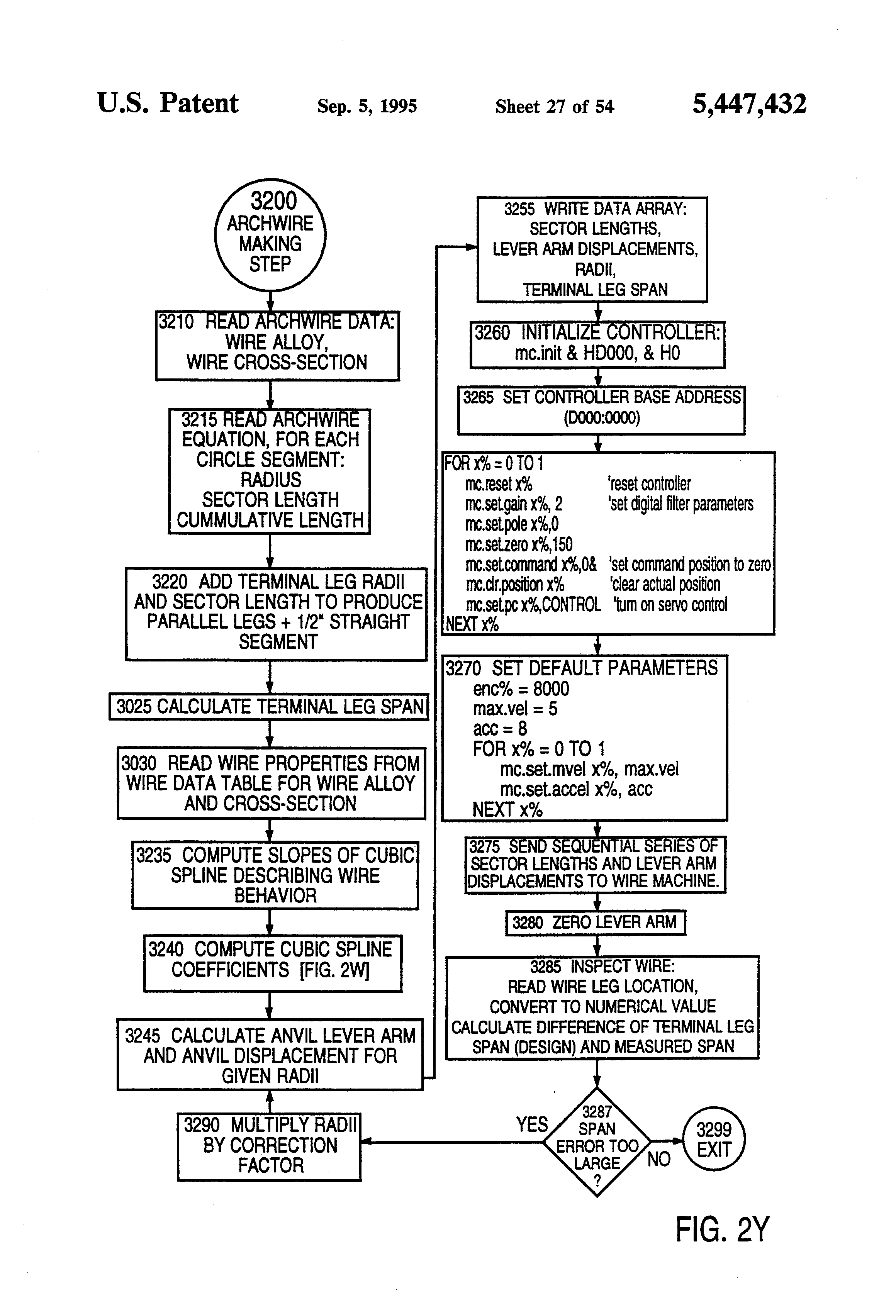 FIG. 2Y is a detailed flow chart of the substeps of the wire bending code generation and wire manufacturing step of the appliance manufacturing procedure of FIG. 2D.