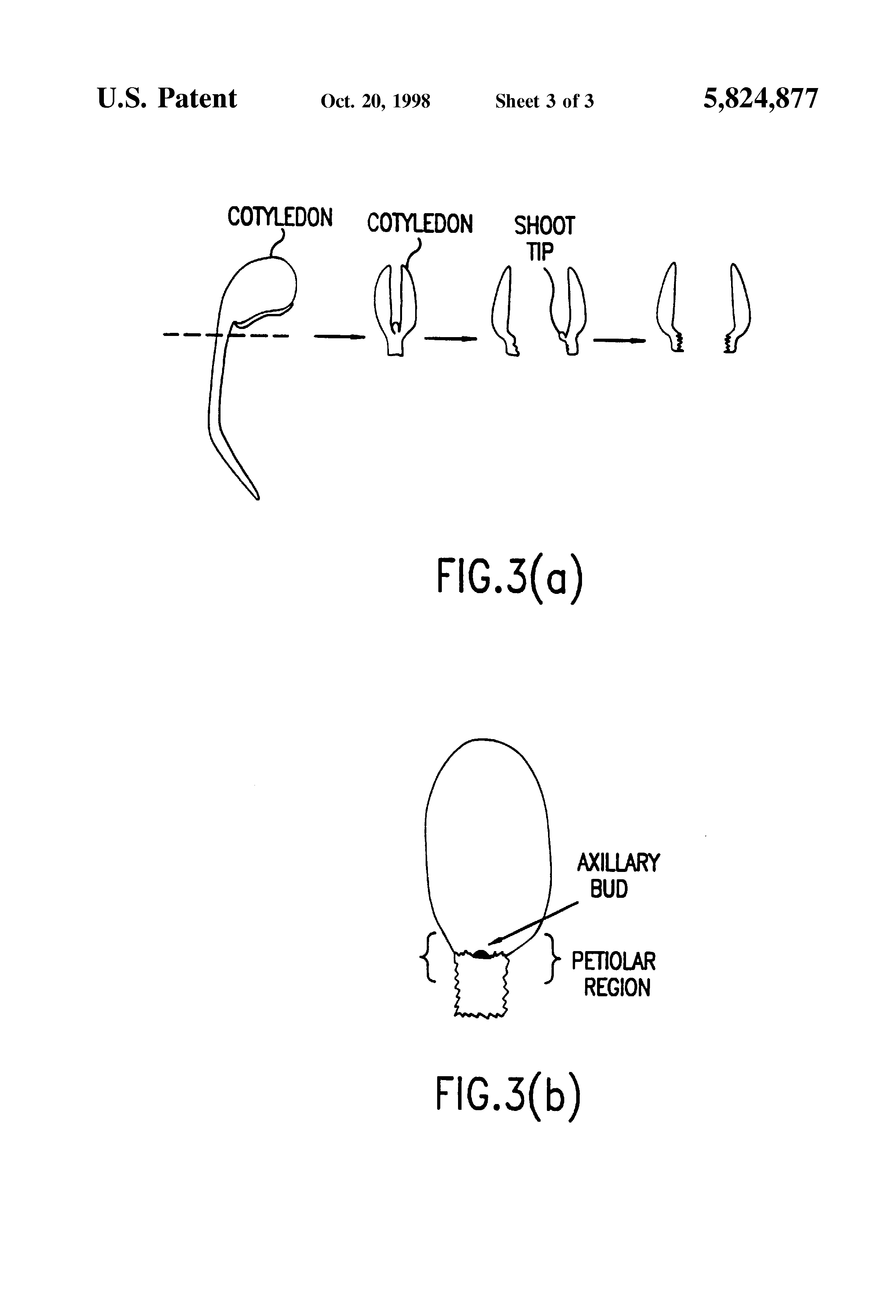 FIGS. 3a-3b show a diagrammatic representation of the cotyledon explant used in the present method.