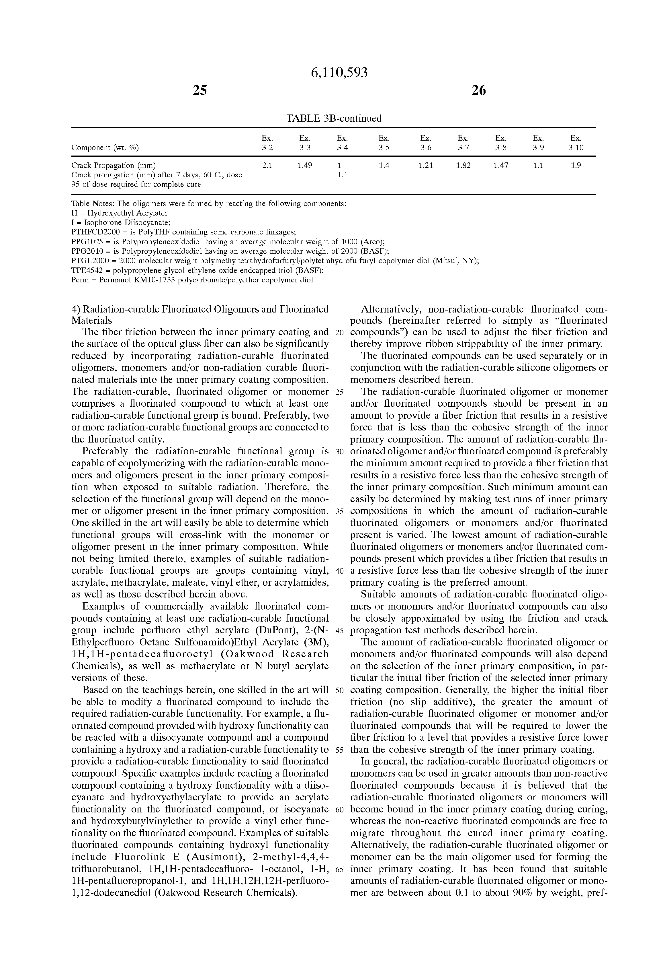 e. a fluorinated component selected from the group consisting of a radiation-curable fluorinated oligomer, a radiation-curable fluorinated monomer, a non-radiation curable fluorinated compound or mixtures thereof;