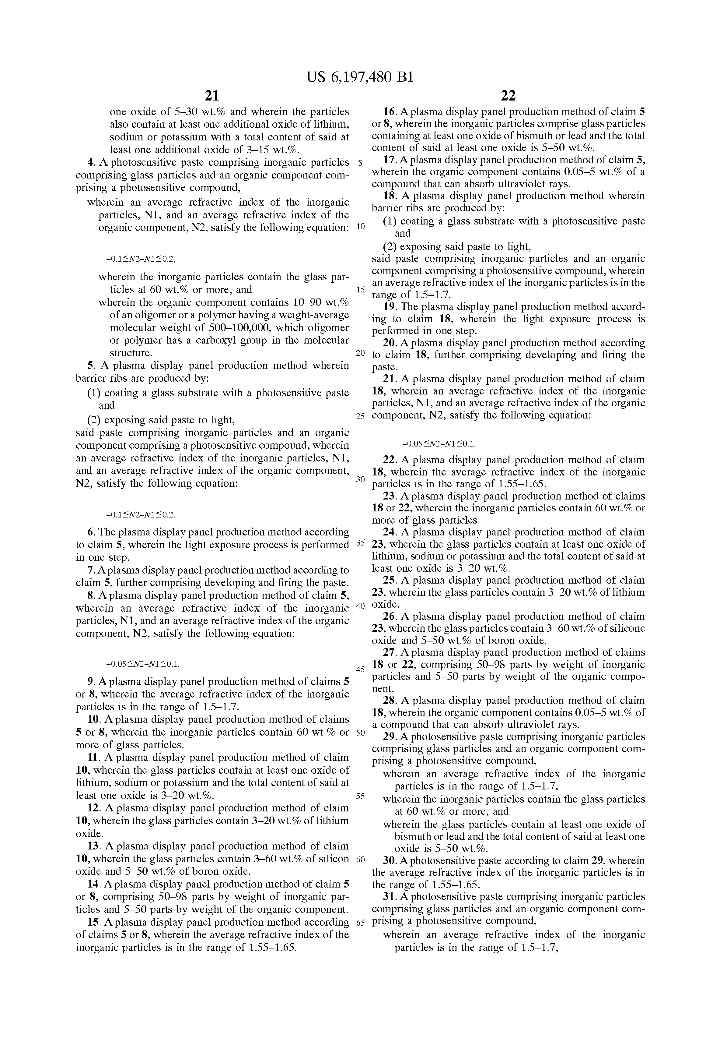 | US7060411 | Oct 18, 2002 | Jun 13, 2006 | Toray Industries, Inc. | Dielectric paste and manufacturing method of plasma display |