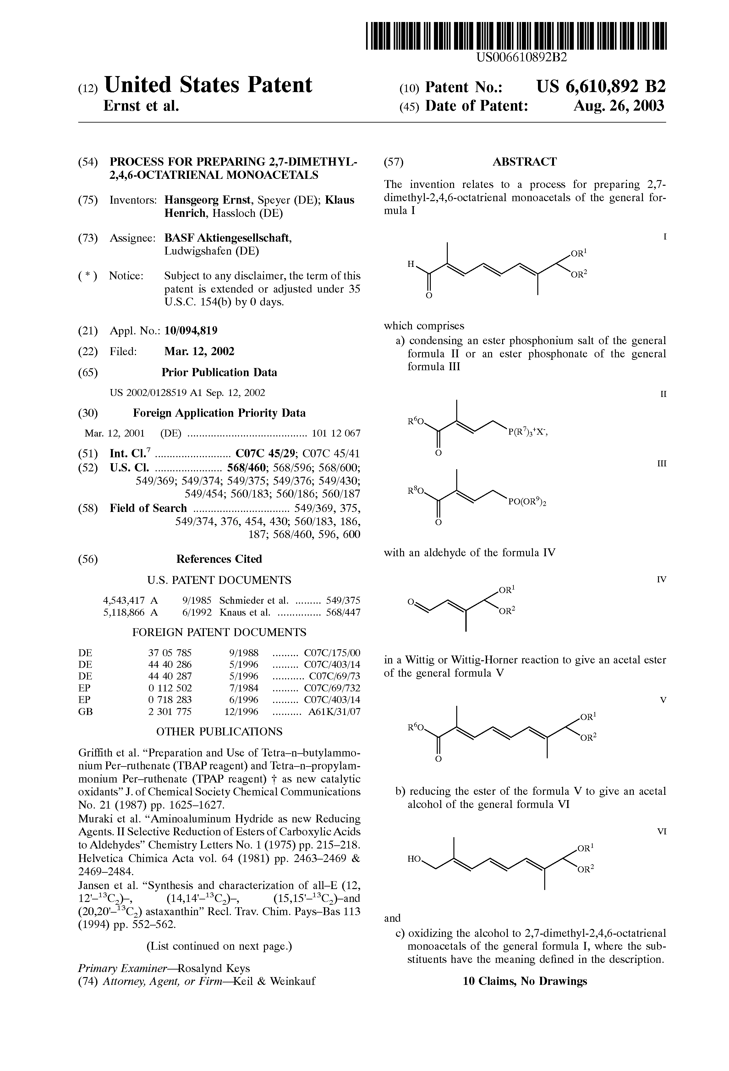 | Publication number | 094819, 10094819, US 6610892 B2, US 6610892B2, US-B2-6610892, US6610892 B2, US6610892B2 |