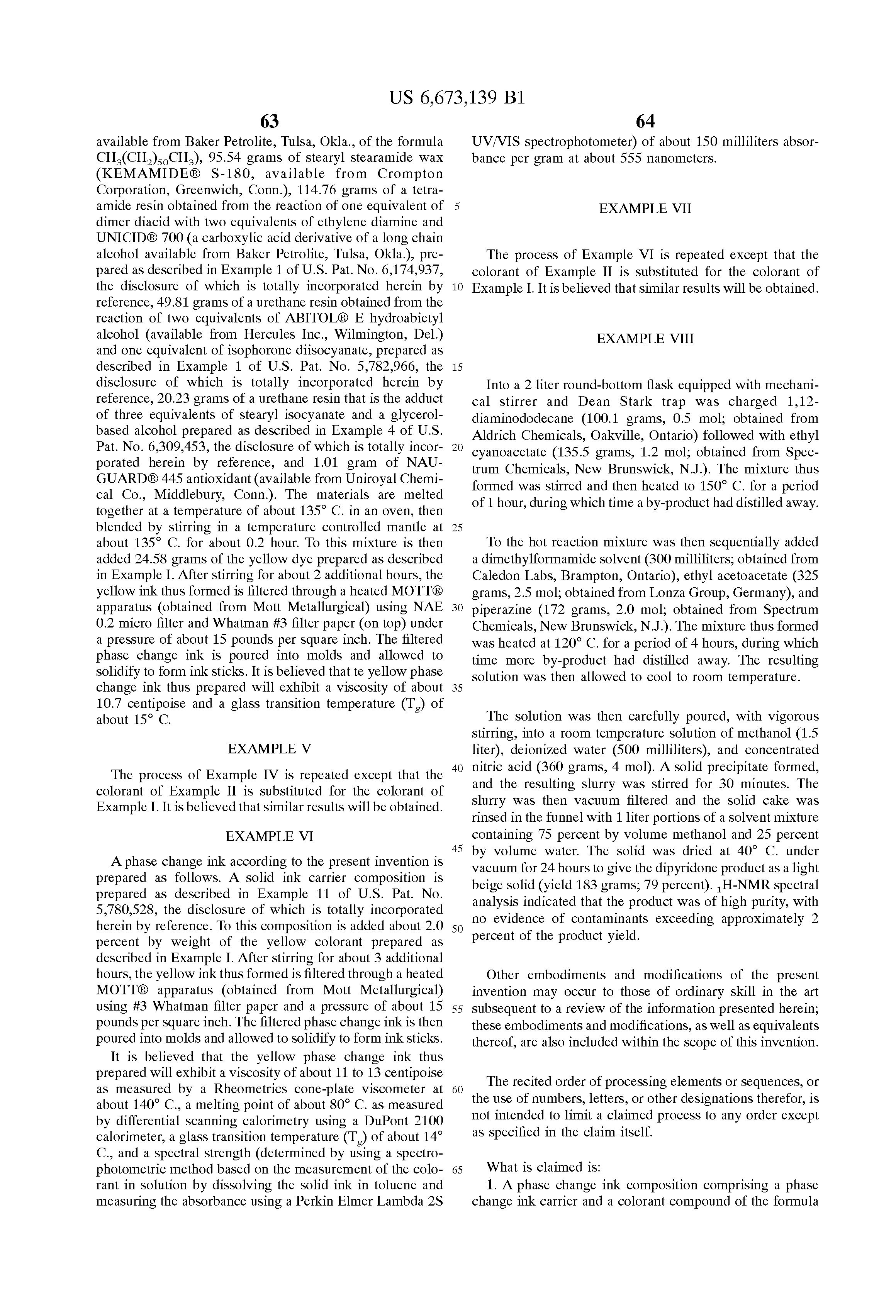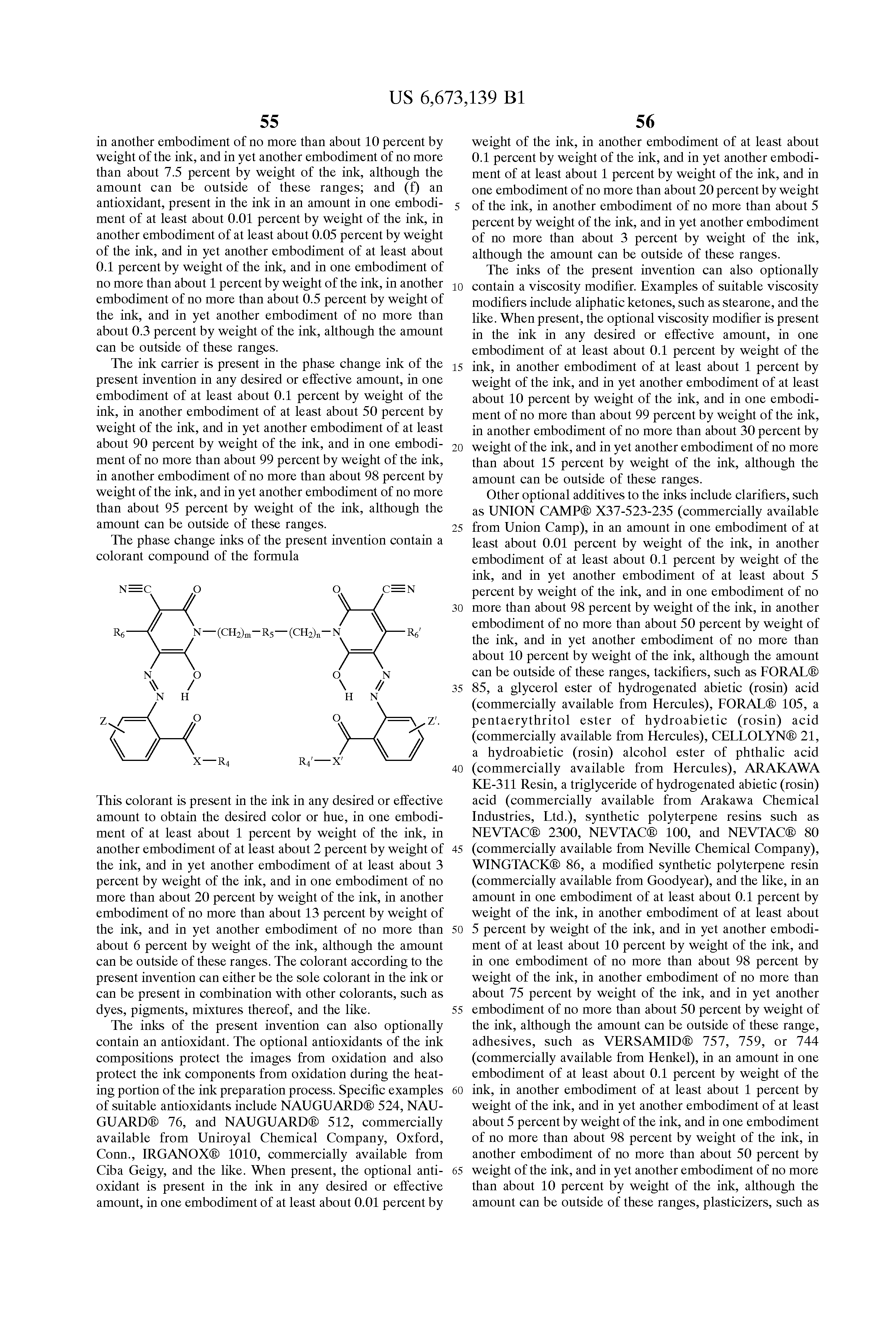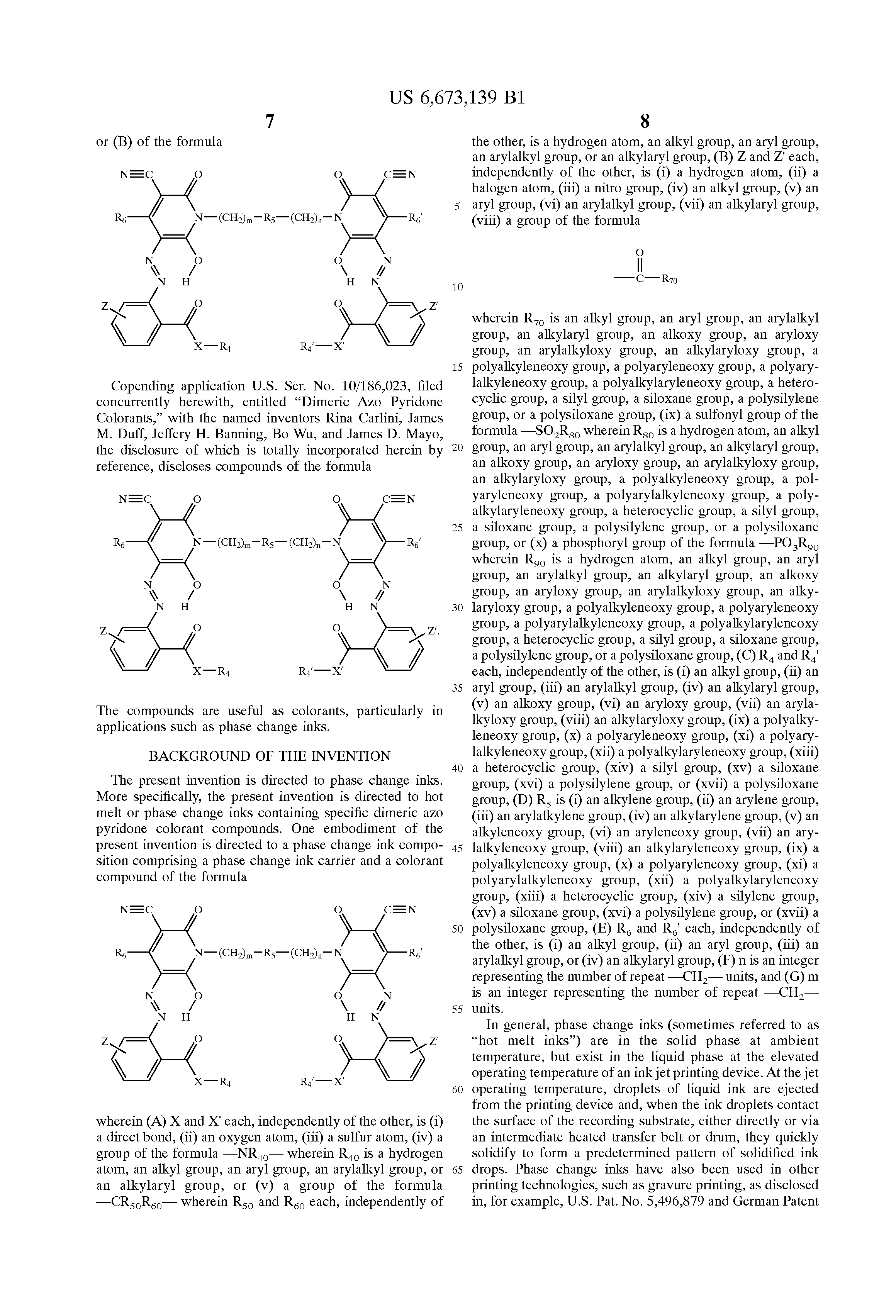 Copending application U.S. Ser. No. 10/184,269, filed concurrently herewith, entitled “Phase Change Inks Containing Dimeric Azo Pyridone Colorants,” with the named inventors Bo Wu, Rina Carlini, Jeffery H. Banning, James M. Duff, James D. Mayo, Jule W. Thomas, Paul F. Smith, and Michael B. Meinhardt, the disclosure of which is totally incorporated herein by reference, discloses a phase change ink composition comprising a phase change ink carrier and a colorant compound of the formula
