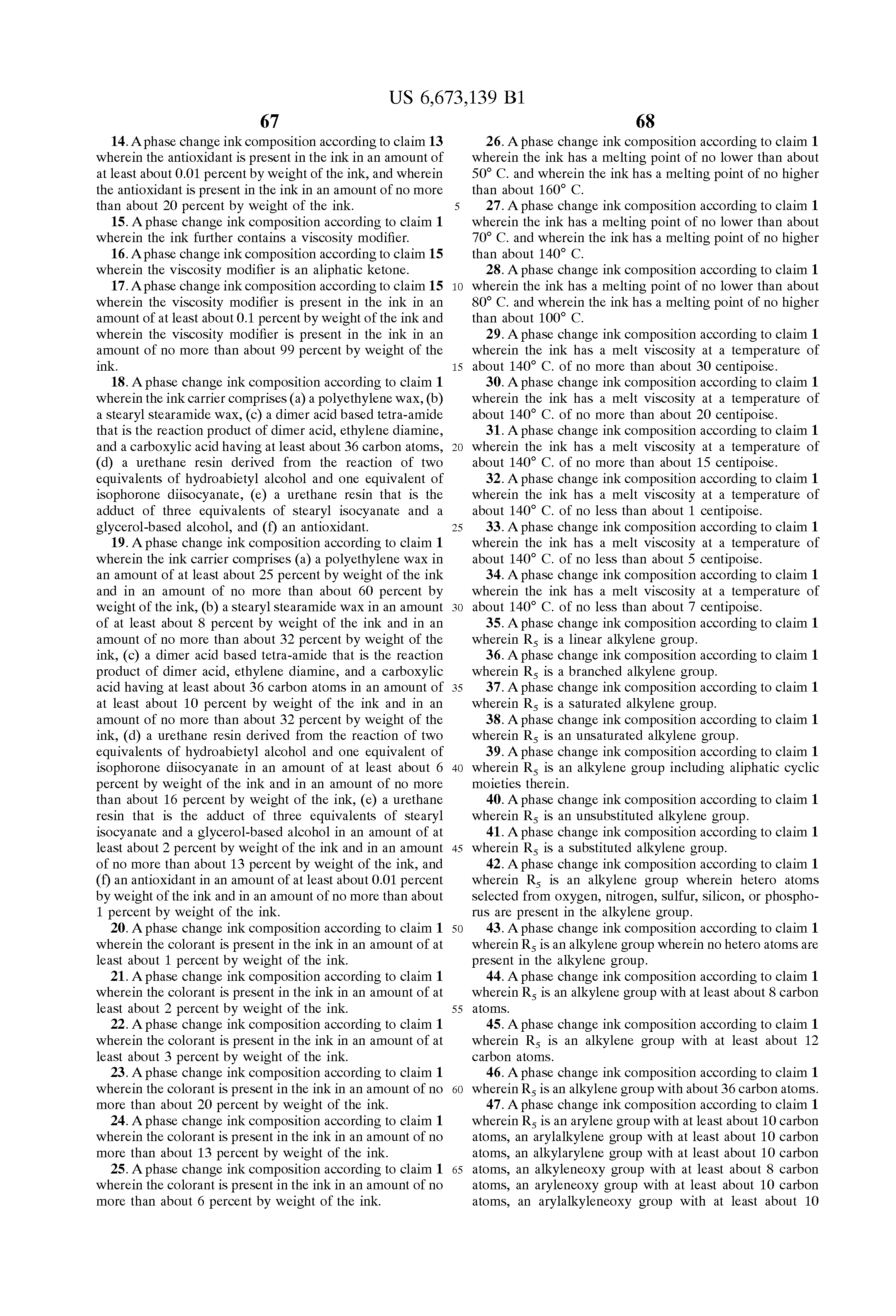 | US20040176634 * | Mar 18, 2004 | Sep 9, 2004 | Titterington Donald R. | Phase change ink formulation containing a combination of a urethane resin, a mixed urethane/urearesin, a mono-amide and a polyethylene wax |