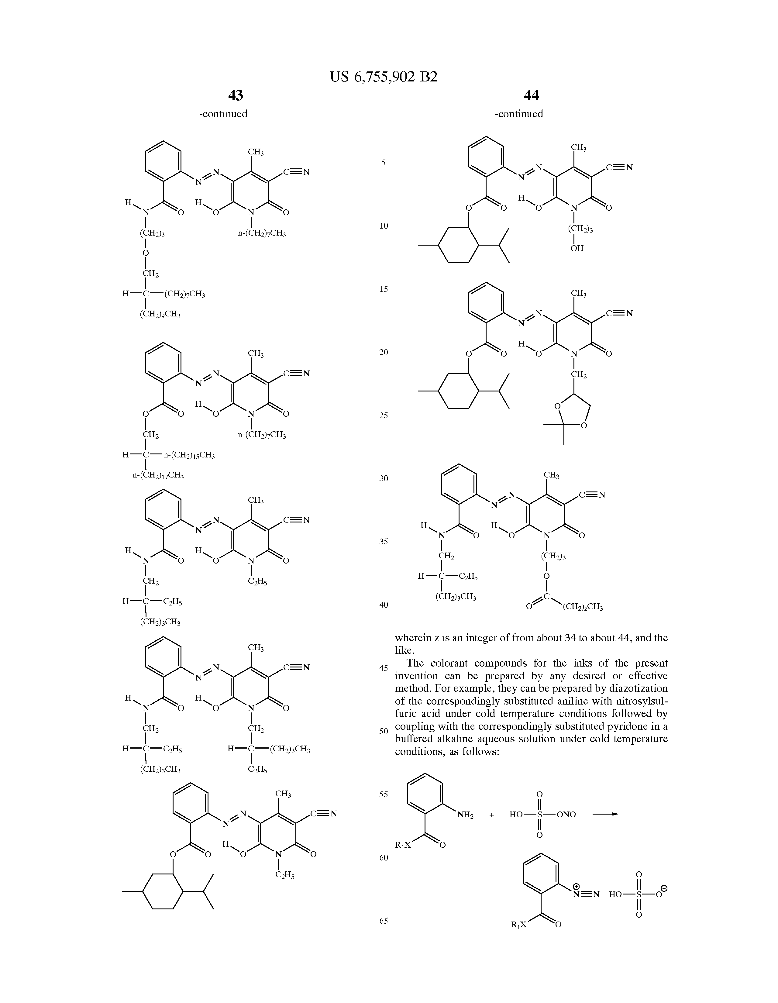 Copending application U.S. Ser. No. 10/184,266, filed concurrently herewith, entitled “Phase Change Inks Containing Dimeric Azo Pyridone Colorants,” with the named inventors Bo Wu, Rina Carlini, James M. Duff, Jeffery H. Banning, and James D. Mayo, the disclosure of which is totally incorporated herein by reference, discloses a phase change ink composition comprising a phase change ink carrier and a colorant compound of the formula