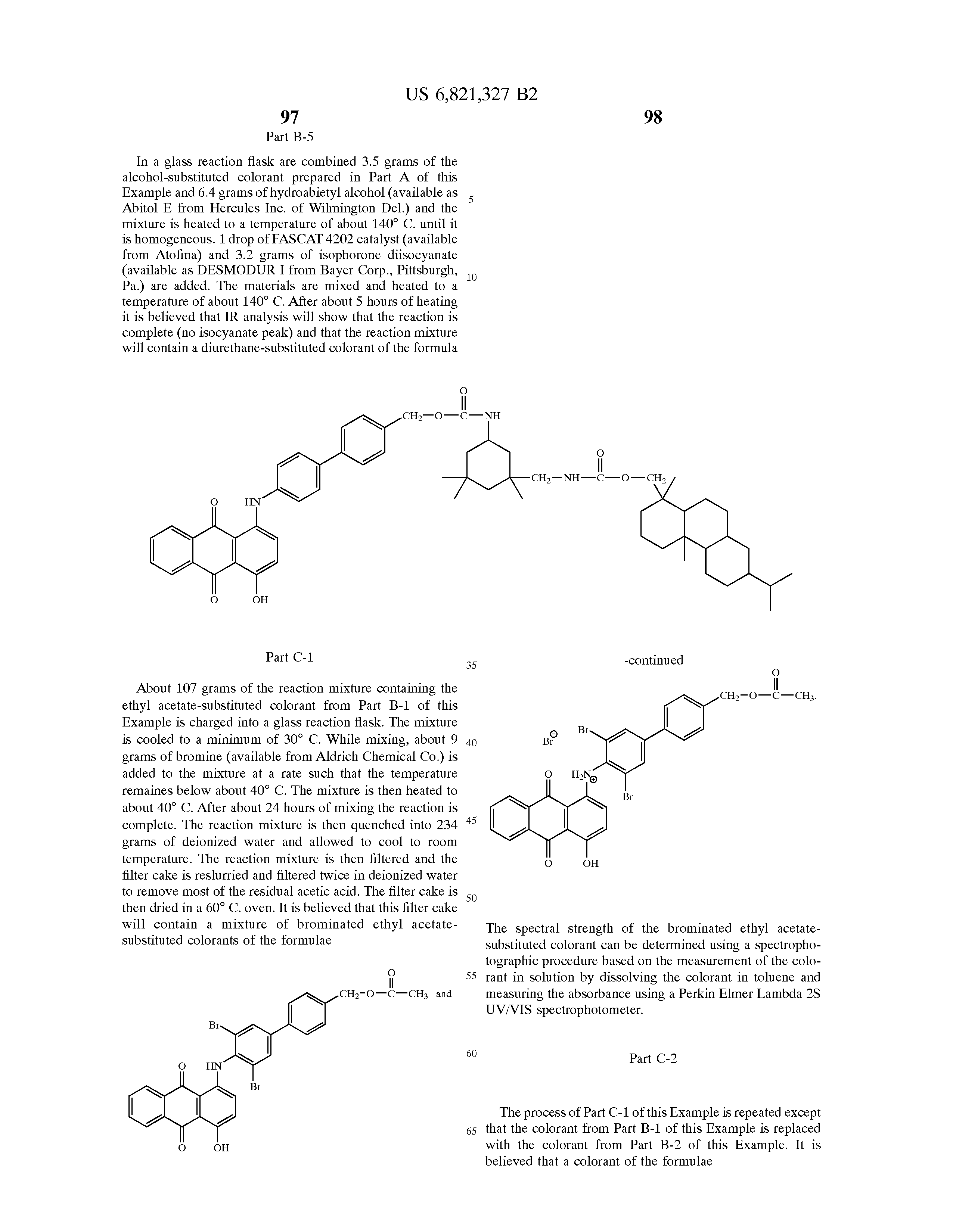 Upon completion of the reaction, the alcohol-substituted colorant according to the present invention is formed as a solid and can be recovered by cooling and filtering the reaction mixture.