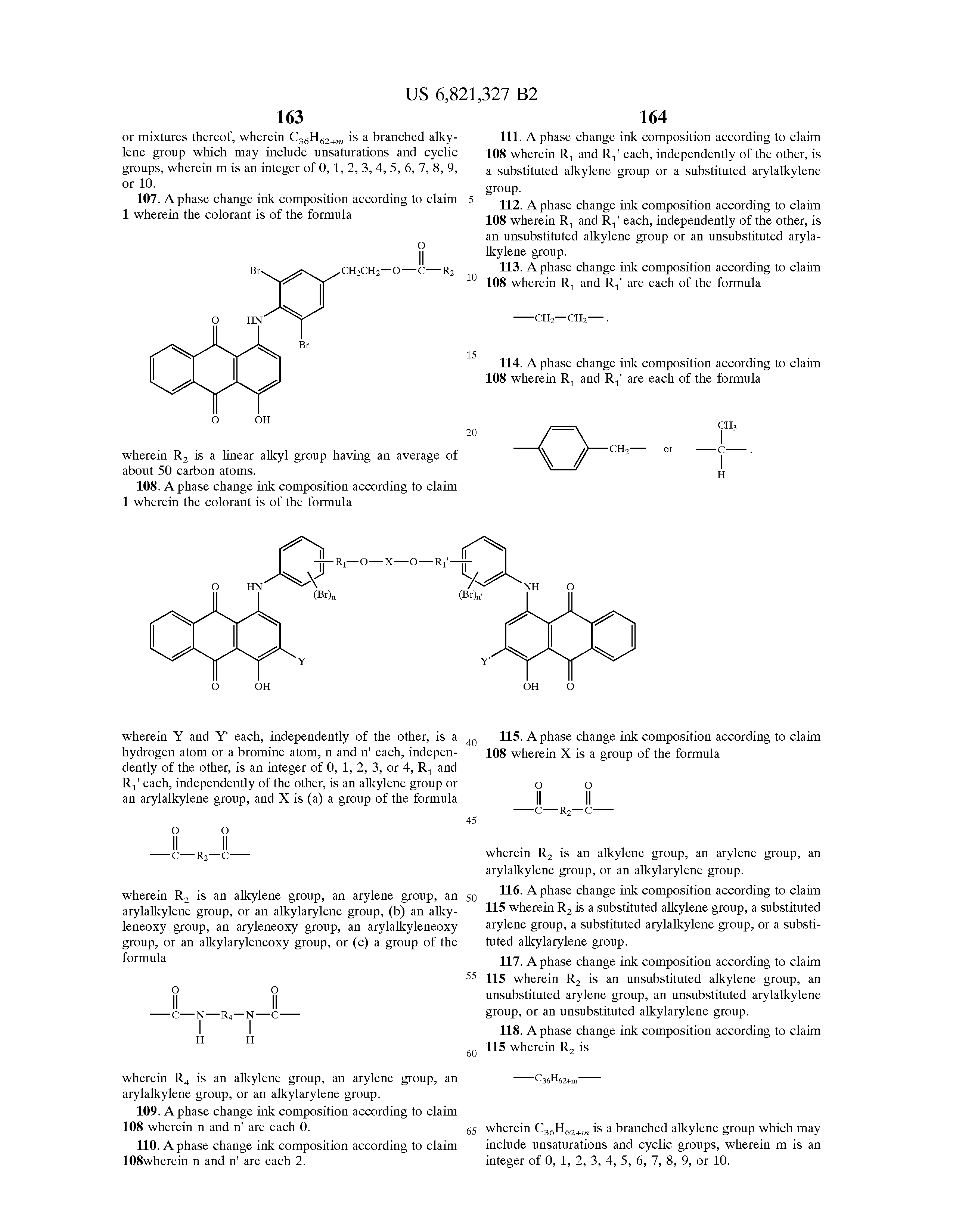 wherein a and b are as defined hereinabove when X is an alkyleneoxy group, an aryleneoxy group, an arylalkyleneoxy group, or an alkylaryleneoxy group and R3 and R3′ each, independently of the others, is an alkylene group (including linear, branched, saturated, unsaturated, cyclic, unsubstituted, and substituted alkylene groups, and wherein hetero atoms, such as oxygen, nitrogen, sulfur, silicon, phosphorus, and the like either may or may not be present in the alkylene group), in one embodiment with at least about 1 carbon atom, in another embodiment with at least about 2 carbon atoms, in another embodiment with at least about 4 carbon atoms, in yet another embodiment with at least about 6 carbon atoms, in still another embodiment with at least about 8 carbon atoms, in another embodiment with at least about 10 carbon atoms, in yet another embodiment with at least about 12 carbon atoms, in still another embodiment with at least about 14 carbon atoms, in another embodiment with at least about 16 carbon atoms, in yet another embodiment with at least about 18 carbon atoms, in still another embodiment with at least about 20 carbon atoms, in another embodiment with at least about 22 carbon atoms, in yet another embodiment with at least about 24 carbon atoms, in still another embodiment with at least about 26 carbon atoms, in another embodiment with at least about 28 carbon atoms, in yet another embodiment with at least about 30 carbon atoms, in still another embodiment with at least about 32 carbon atoms, in another embodiment with at least about 34 carbon atoms, in yet another embodiment with at least about 36 carbon atoms, in still another embodiment with at least about 38 carbon atoms, in another embodiment with at least about 40 carbon atoms, in yet another embodiment with at least about 42 carbon atoms, in still another embodiment with at least about 44 carbon atoms, in another embodiment with at least about 46 carbon atoms, in yet another embodiment with at least about 48 carbon atoms, and in still another embodiment with at least about 50 carbon atoms, and in one embodiment with no more than about 100 carbon atoms, in another embodiment with no more than about 70 carbon atoms, in yet another embodiment with no more than about 60 carbon atoms, and in still another embodiment with no more than about 50 carbon atoms, although the number of carbon atoms can be outside of these ranges, an arylene group (including unsubstituted and substituted arylene groups, and wherein hetero atoms, such as oxygen, nitrogen, sulfur, silicon, phosphorus, and the like either may or may not be present in the arylene group), in one embodiment with at least about 6 carbon atoms, in another embodiment with at least about 10 carbon atoms, in yet another embodiment with at least about 13 carbon atoms, in still another embodiment with at least about 14 carbon atoms, in another embodiment with at least about 16 carbon atoms, in yet another embodiment with at least about 18 carbon atoms, in still another embodiment with at least about 20 carbon atoms, in another embodiment with at least about 22 carbon atoms, in yet another embodiment with at least about 24 carbon atoms, in still another embodiment with at least about 26 carbon atoms, in another embodiment with at least about 28 carbon atoms, in yet another embodiment with at least about 30 carbon atoms, in still another embodiment with at least about 32 carbon atoms, in another embodiment with at least about 34 carbon atoms, in yet another embodiment with at least about 36 carbon atoms, in still another embodiment with at least about 38 carbon atoms, in another embodiment with at least about 40 carbon atoms, in yet another embodiment with at least about 42 carbon atoms, in still another embodiment with at least about 44 carbon atoms, in another embodiment with at least about 46 carbon atoms, in yet another embodiment with at least about 48 carbon atoms, and in still another embodiment with at least about 50 carbon atoms, and in one embodiment with no more than about 100 carbon atoms, in another embodiment with no more than about 75 carbon atoms, in yet another embodiment with no more than about 60 carbon atoms, and in still another embodiment with no more than about 50 carbon atoms, although the number of carbon atoms can be outside of these ranges, an arylalkylene group (including unsubstituted and substituted arylalkylene groups, and wherein hetero atoms, such as oxygen, nitrogen, sulfur, silicon, phosphorus, and the like either may or may not be present in either or both of the alkyl portion and the aryl portion of the arylalkylene group), in one embodiment with at least about 6 carbon atoms, in another embodiment with at least about 7 carbon atoms, in yet another embodiment with at least about 8 carbon atoms, in another embodiment with at least about 10 carbon atoms, in yet another embodiment with at least about 12 carbon atoms, in still another embodiment with at least about 14 carbon atoms, in another embodiment with at least about 16 carbon atoms, in yet another embodiment with at least about 18 carbon atoms, in still another embodiment with at least about 20 carbon atoms, in another embodiment with at least about 22 carbon atoms, in yet another embodiment with at least about 24 carbon atoms, in still another embodiment with at least about 26 carbon atoms, in another embodiment with at least about 28 carbon atoms, in yet another embodiment with at least about 30 carbon atoms, in still another embodiment with at least about 32 carbon atoms, in another embodiment with at least about 34 carbon atoms, in yet another embodiment with at least about 36 carbon atoms, in another embodiment with at least about 38 carbon atoms, in yet another embodiment with at least about 40 carbon atoms, in still another embodiment with at least about 42 carbon atoms, in another embodiment with at least about 44 carbon atoms, in yet another embodiment with at least about 46 carbon ato