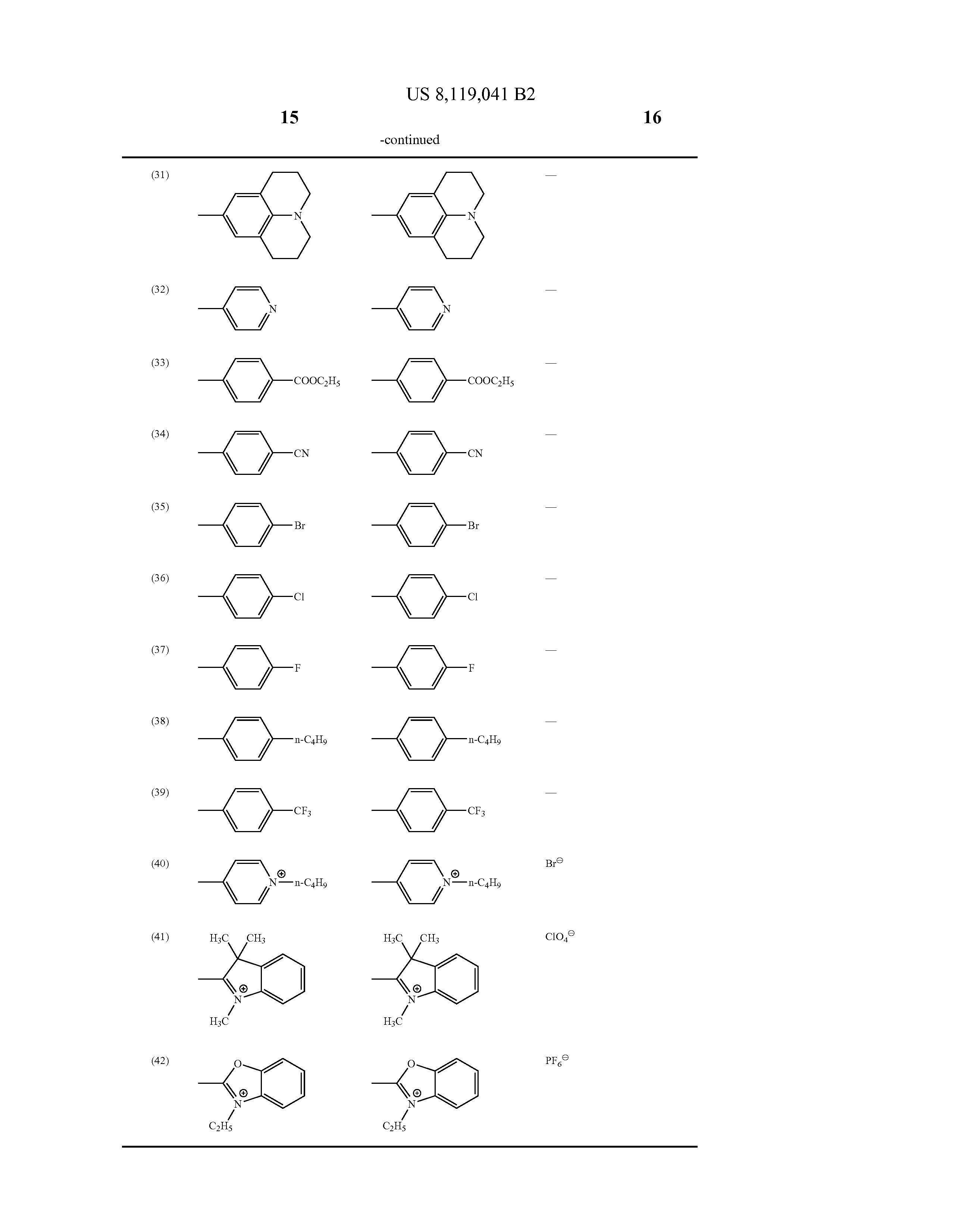 Specific examples of the heterocyclic group include pyrrolidine, piperidine, piperazine, morpholine, thiophene, selenophene, furane, pyrrole, imidazole, pyrazole, pyridine, pyrazine, pyridazine, pyrimidine, triazole, triazine, indole, indazole, purine, thiazoline, thiazole, thiadiazole, oxazoline, oxazole, oxadiazole, quinoline, isoquinoline, phthalazine, naphthyridine, quinoxaline, quinazoline, cinnoline, pteridine, acridine, phenanthroline, phenazine, tetrazole, benzoimidazole, benzoxazole, benzothiazole, benzotriazole, tetrazaindene, benzoindolene, carbazole, dibenzofurane, and quaternary onium cation having quaterized nitrogen atoms (if nitrogen atoms form a ring). Preferred among these heterocyclic groups are pyridine, pyrimidine, pyrazine, indole, thiophene, thiazole, oxazole, quinoline, acridine, benzoimidazole, benzoxazole, benzothiazole, benzoindolene, and quaternary onium cation having quaterized nitrogen atoms (if nitrogen atoms form a ring). Particularly preferred among these heterocyclic groups are pyridine, thiophene, acridine, benzoimidazole, benzoxazole, benzothiazole, benzoindolene, and quaternary onium cation having quaterized nitrogen atoms (if nitrogen atoms form a ring).