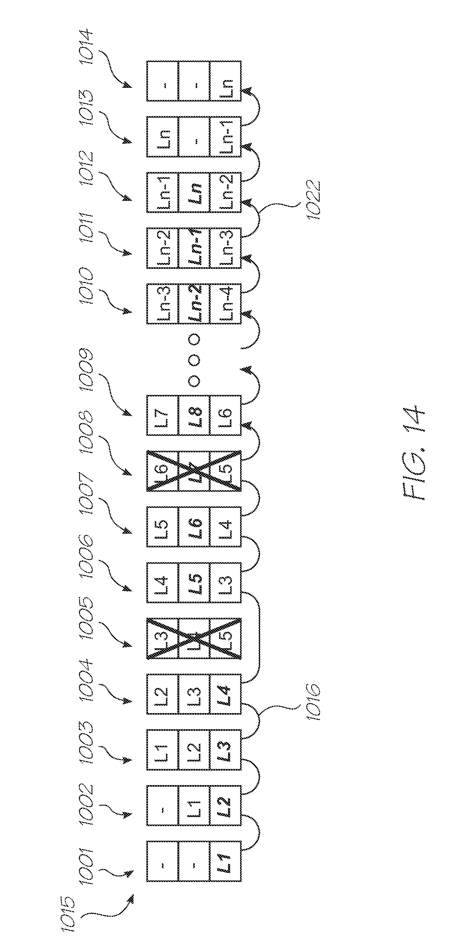 In this case when a layer group fails, the next layer group would not be able to print the previous layer and need to be mapped out. Thus, for example, if layer group five fails, both it and layer group six would be mapped out. Layer group seven would then print layer five and layer group eight would then print layer six, and so on. Thus each failure would require the use of two spare layer groups and so twice as many spare layer groups would be required to provide the ability to cope with the same number of failures. It follows that odd layer groups will store data relating to odd layers and even layer groups will store data relating to even layers. Thus layer group m will sore data relating to layers m, m+2 and m+4. Apart from these differences, the system would function identically to that described.