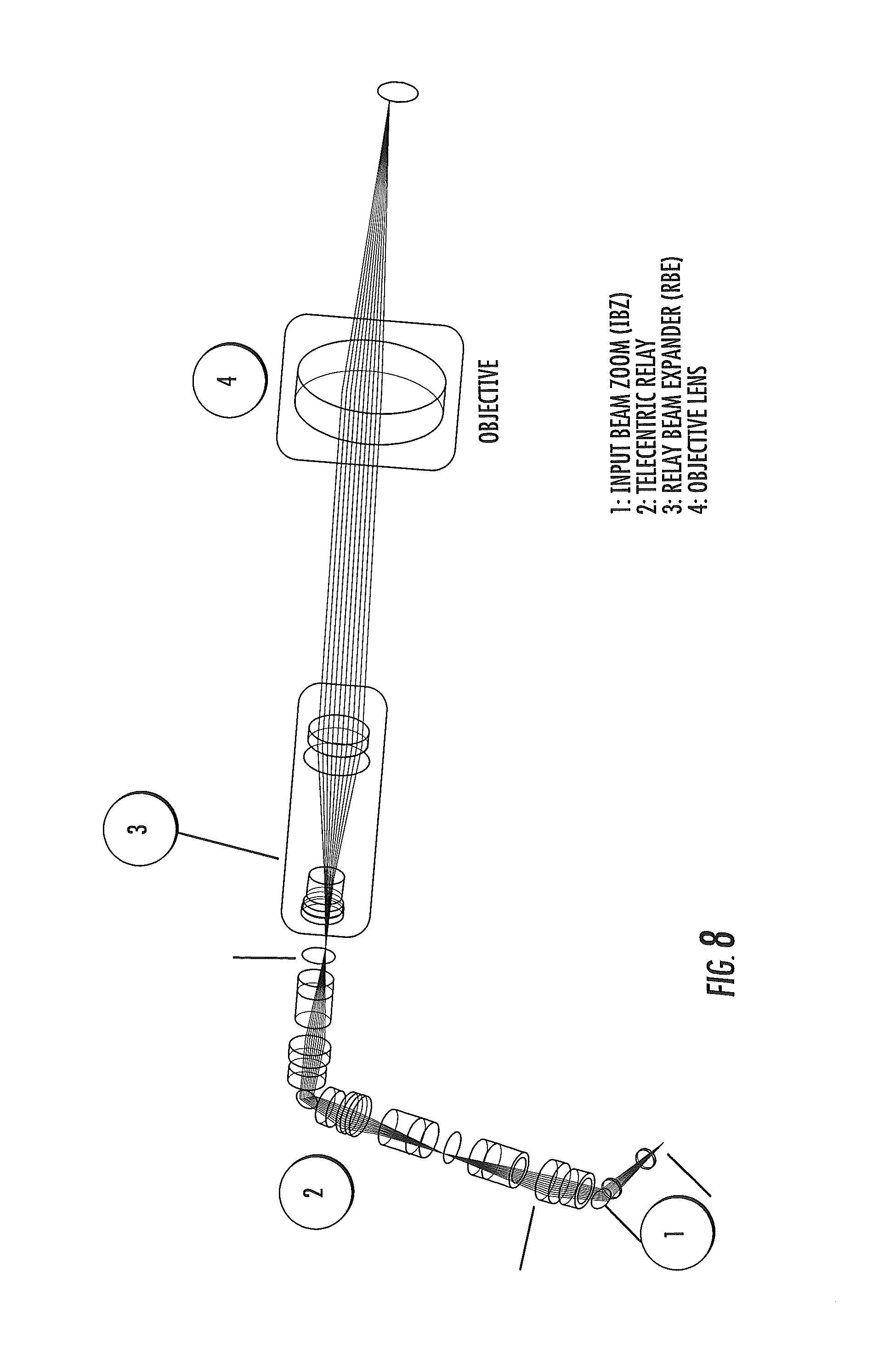 As used herein, the “input beam zoom” refers to the zoom factor as a function of first and second lens spacing, D1 and D2 illustrated in