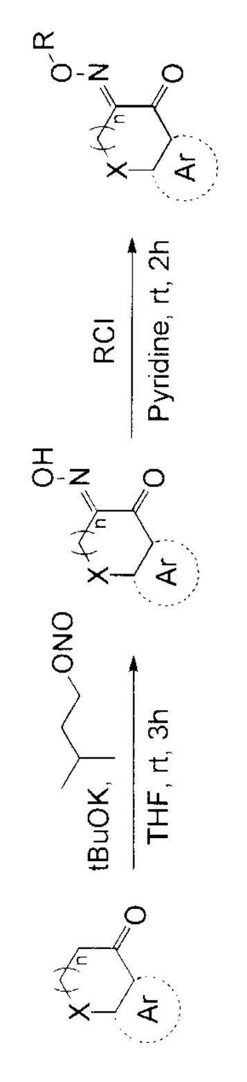 すなわち、前記オキシム基を含む環構造においては、その核となる環構造が、カルボニル基を構成する末端炭素と、オキシム基を構成する炭素とを含む環構造であり、このカルボニル基を構成する炭素とオキシム基を構成する炭素とは該環構造上で隣接している。 That is, in the ring structure containing the oxime group, ring structure that its core is a ring structure containing a terminal carbon which constitutes a carbonyl group, and carbon atoms constituting the oxime group, carbon atoms constituting the carbonyl group The carbon atoms constituting the oxime group and I are adjacent on the ring structure.