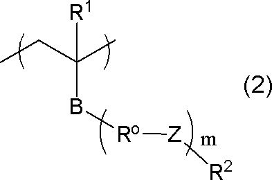 mは、-R 0 -Z-で表される構造の繰り返し数であり、0~5の整数を表す。 m is the number of repetitions of the structure represented by -R 0 -Z-, an integer of 0-5. mが0である場合、-R 0 -Z-は存在せず、単結合となる。 when m is 0, -R 0 -Z- is not present, it is a single bond.