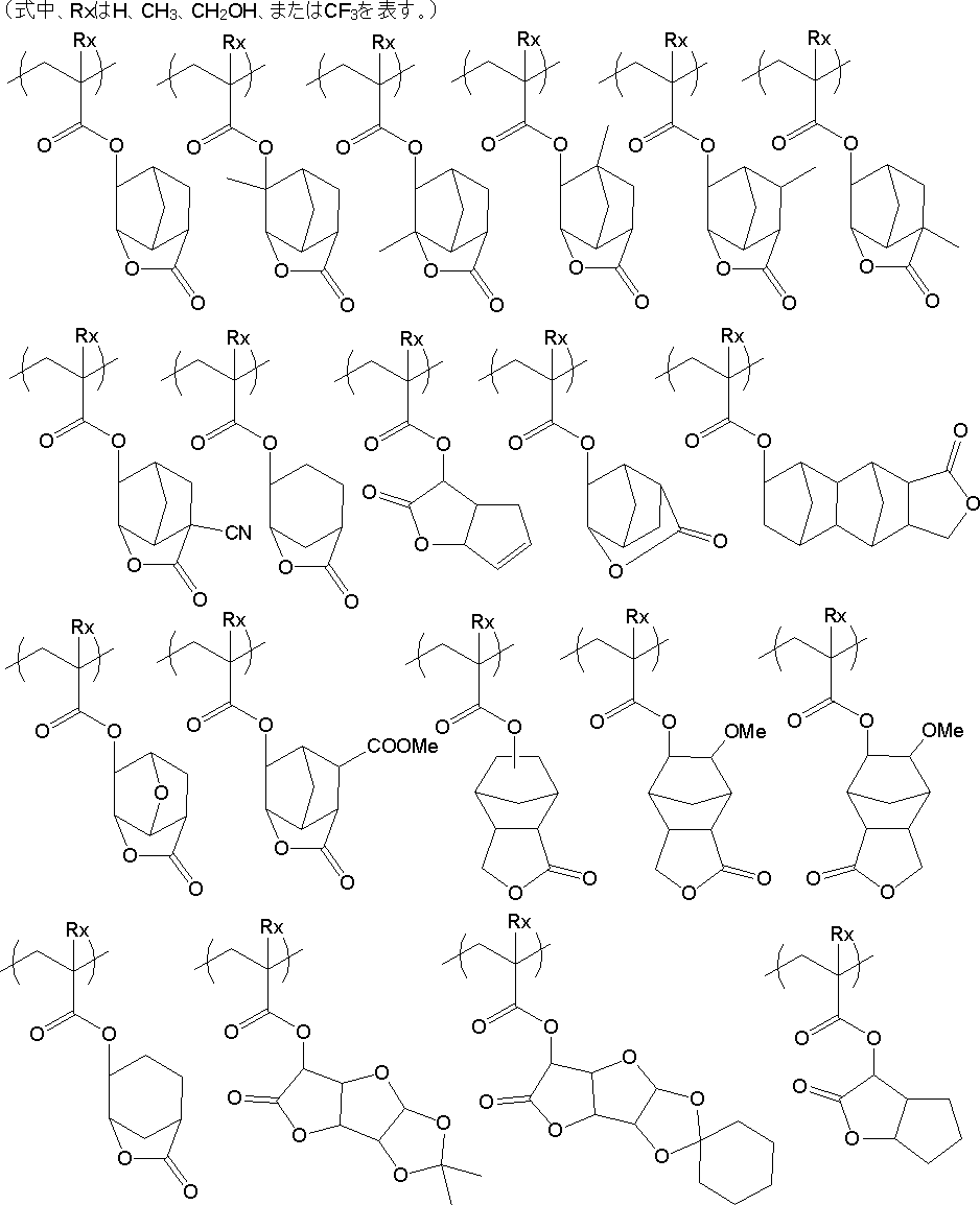 ラクトン構造としては、ラクトン構造を有していればいずれでも用いることができるが、好ましくは5~7員環ラクトン構造であり、5~7員環ラクトン構造にビシクロ構造、スピロ構造を形成する形で他の環構造が縮環していてもよい。 As for the lactone structure, it is possible to use any as long as it has a lactone structure, preferably 5 to 7-membered ring lactone structure, bicyclo structure 5 to 7-membered ring lactone structure, form of forming a bicyclo or spiro structure another ring structure may be condensed in. 下記一般式(LC1-1)~(LC1-17)のいずれかで表されるラクトン構造を有する繰り返し単位を有することがより好ましい。 It is more preferred to have a repeating unit having a lactone structure represented by any one of the following formulas (LC1-1) ~ (LC1-17). また、ラクトン構造が主鎖に直接結合していてもよい。 Moreover, lactone structure may be bonded directly to the main chain. 好ましいラクトン構造としては(LC1-1)、(LC1-4)、(LC1-5)、(LC1-6)、(LC1-13)、(LC1-14)、(LC1-17)であり、特に好ましいラクトン構造は(LC1-1)である。 Preferred lactone structure (LC1-1), (LC1-4), (LC1-5), (LC1-6), (LC1-13), (LC1-14), and a (LC1-17), and in particular Preferred lactone structures are (LC1-1).